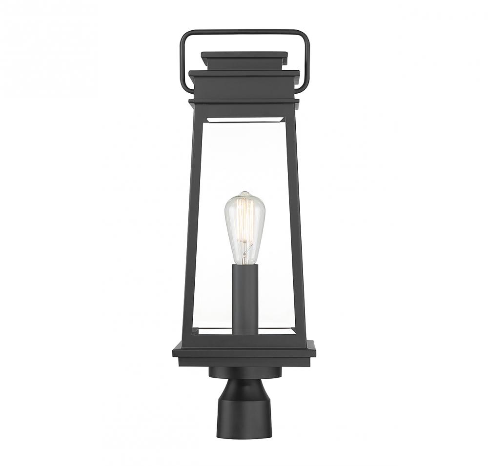 The Savoy House Boone 1-light outdoor post light showcases a classic lantern-style lighting look with panes of clear beveled glass and a matte black finish that adds versatility. Boone is 24.25" in height and 8.25" in width. It uses 1 standard size bulb with a max of 60 watts (bulb not included).