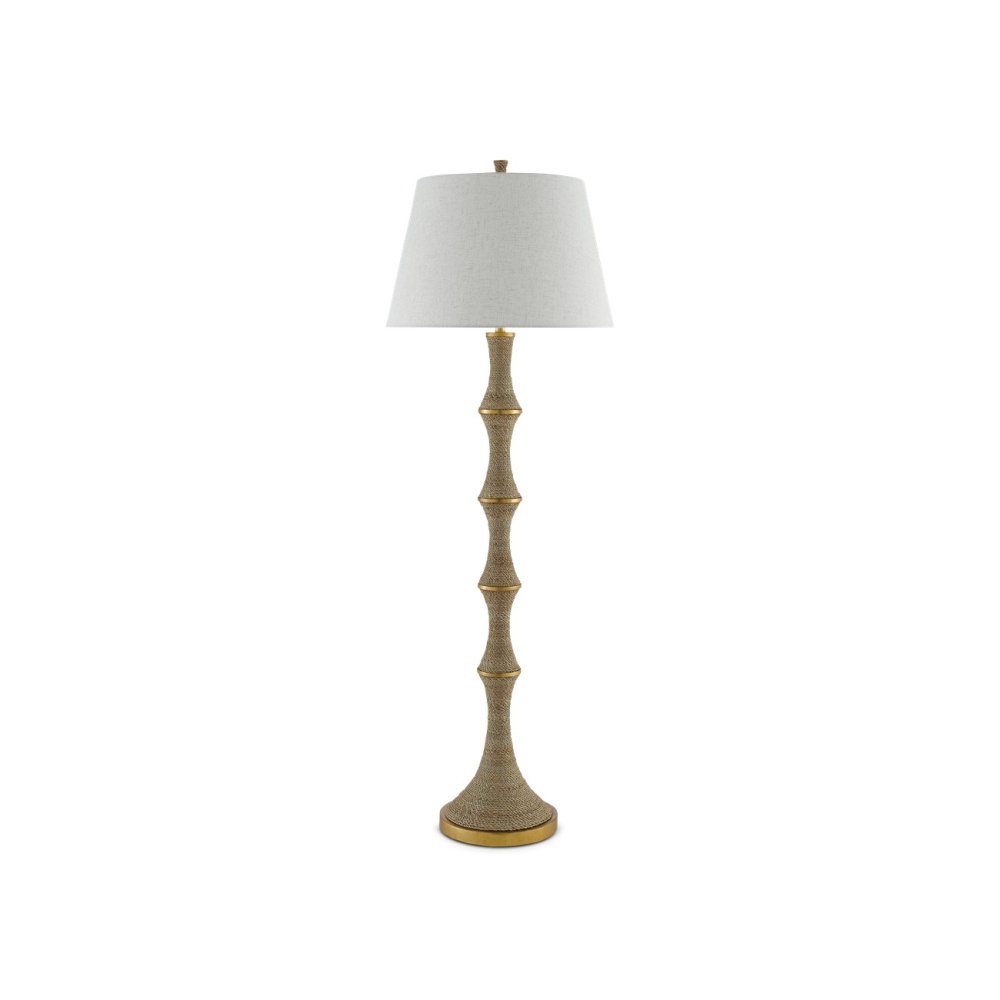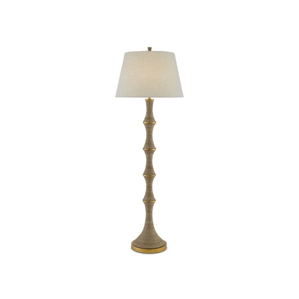 The Bourgeon Floor Lamp would have been fascinating had its fluted stem simply been wrapped in abaca rope but we’ve ornamented the swells in the stem with a dark contemporary gold leaf finish that gleams when light strikes it. We thought this would dress up the nautically inspired composition, which we’ve topped with a beige poplin cotton shade. This lovely lamp is an ideal luminary for a beachside condo, a seaside cottage or a lakefront home.