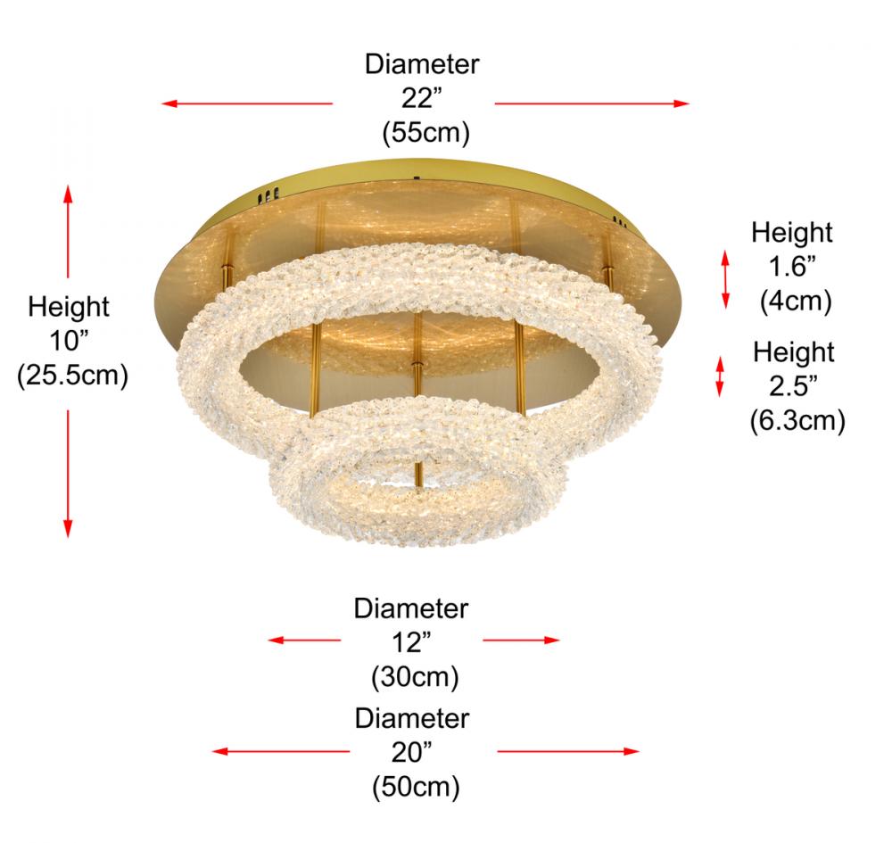 Illuminate your space with this enchanting 22 inch LED Tiered Flush Mount, showcasing two captivating rings adorned with crystals for a touch of sophistication.