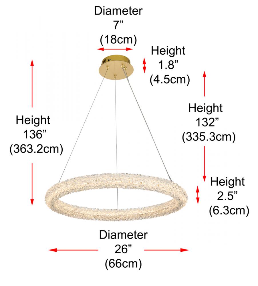 Elevate your space with this captivating 26 inch LED Chandelier, presenting a captivating round crystal-adorned chandelier paired with an elegant 7-inch canopy for a touch of sophistication.