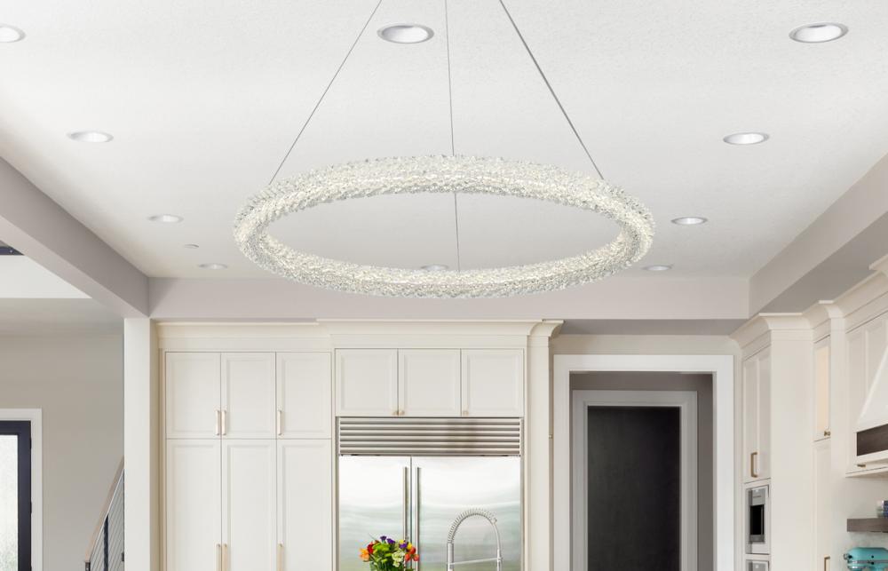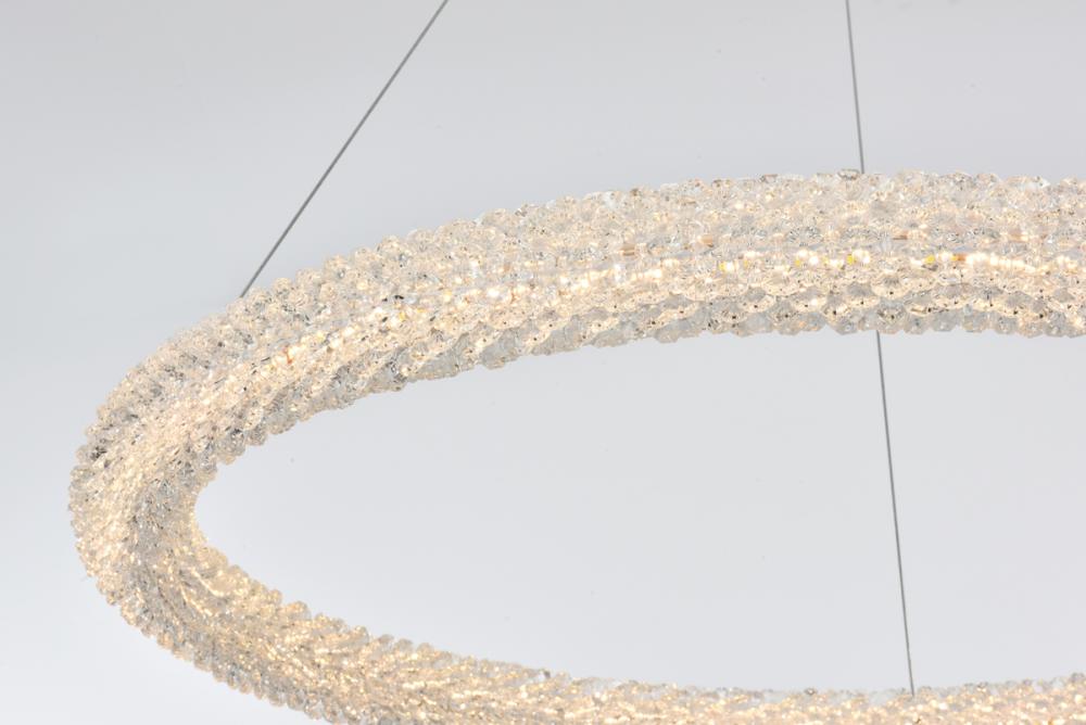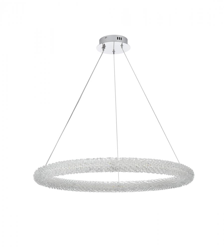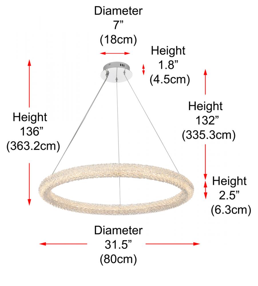 Elevate your space with this captivating 32 inch LED Chandelier, presenting a captivating round crystal-adorned chandelier paired with an elegant 7-inch canopy for a touch of sophistication.