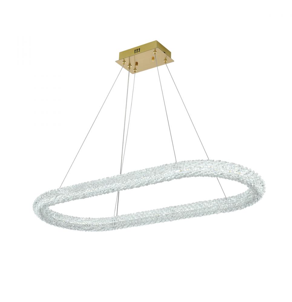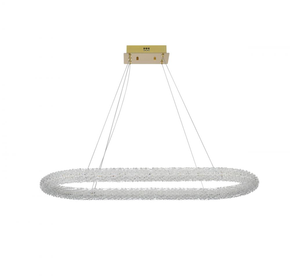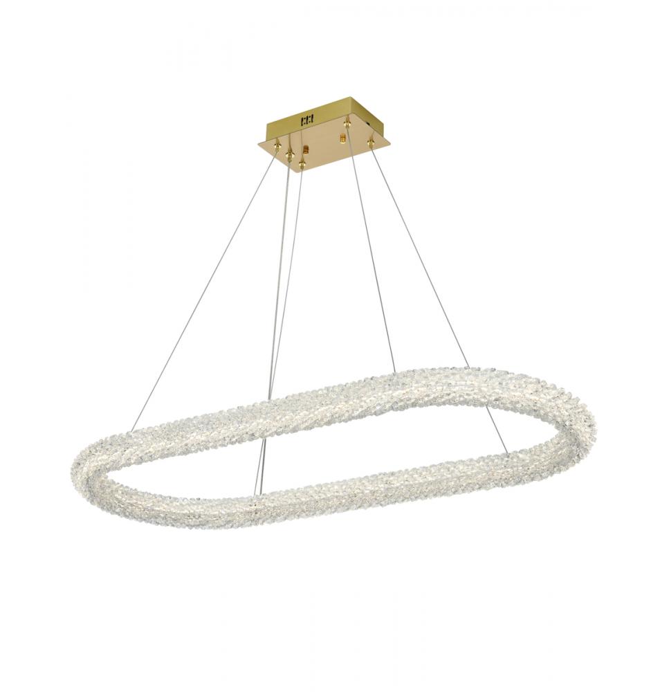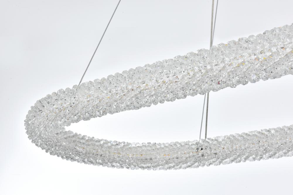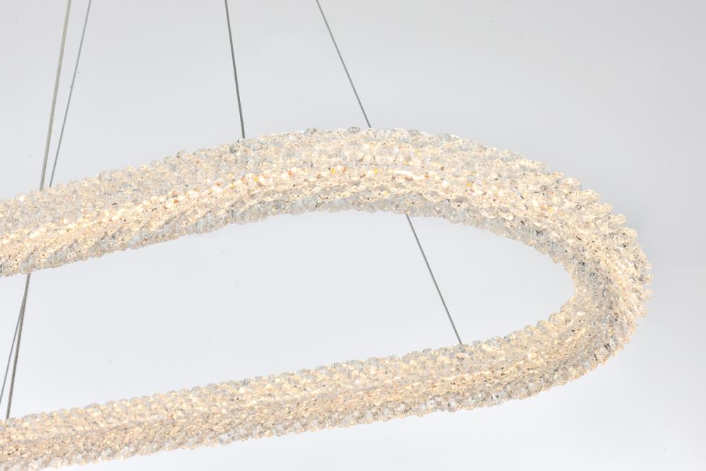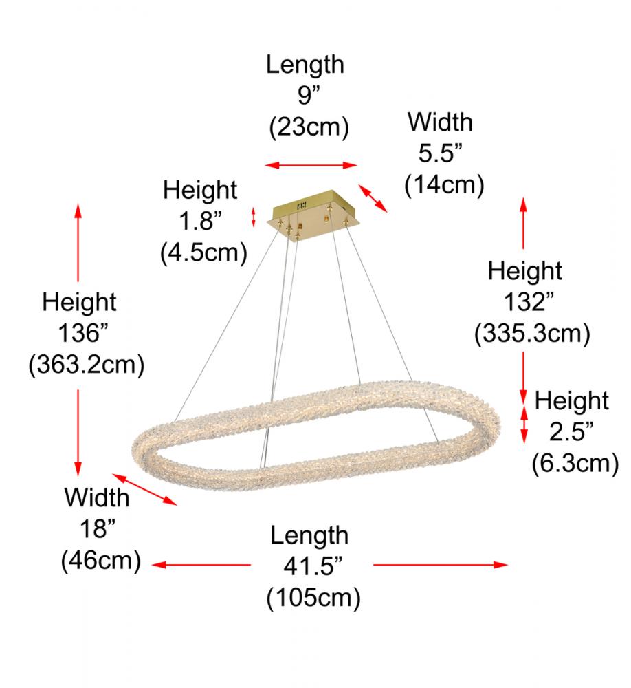 Elevate your space with this captivating 42 inch LED Chandelier, presenting a captivating oblong crystal-adorned chandelier paired with an elegant 9-inch canopy for a touch of sophistication.