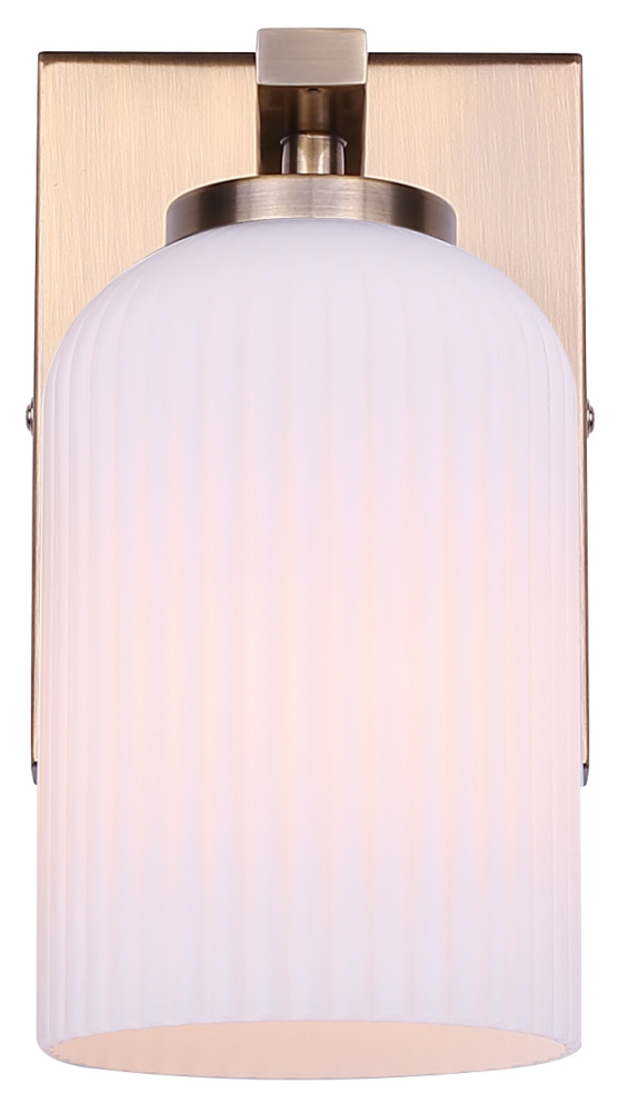 BRAM 1 Lt Wall Sconce/Vanity, Gold Finish with Ribbed Opal Glass, 60W Type A