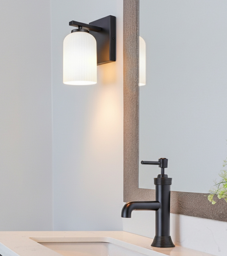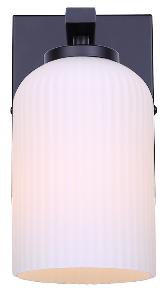 BRAM 1 Lt Wall Sconce/Vanity, Matte Black Finish with Ribbed Opal Glass, 60W Type A