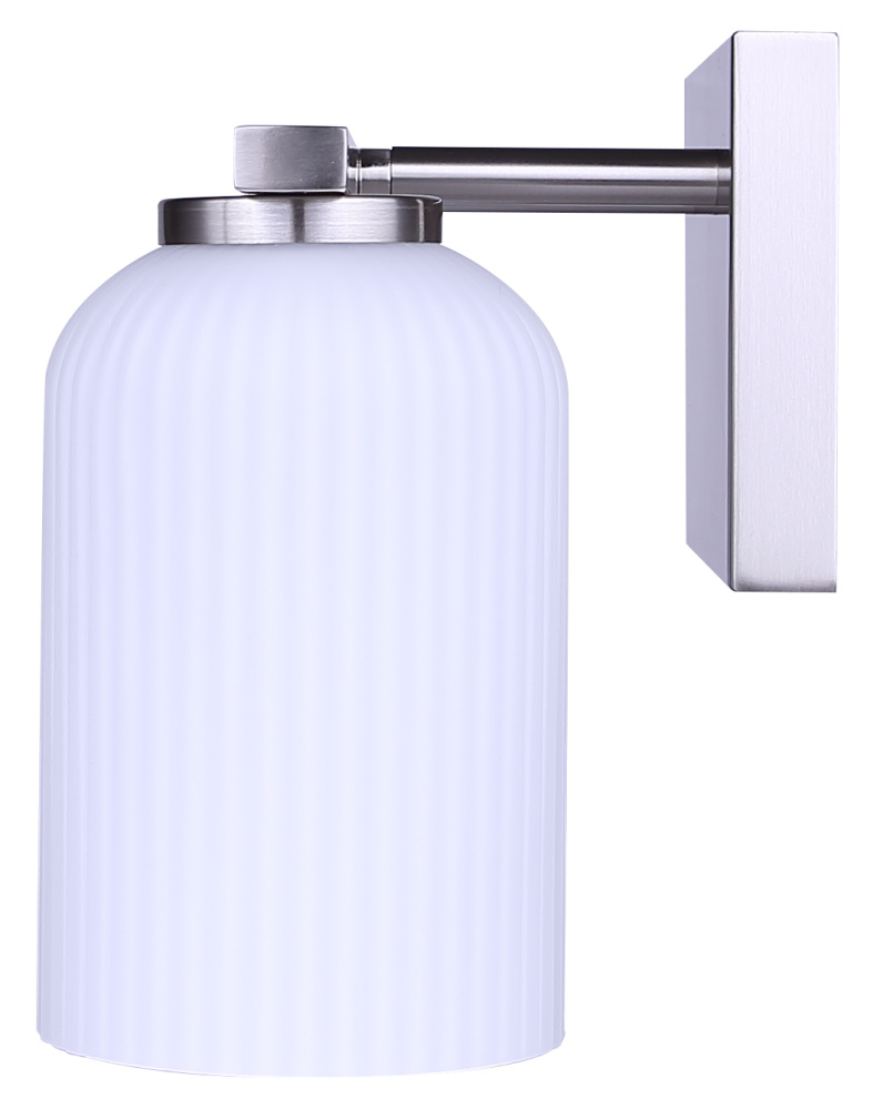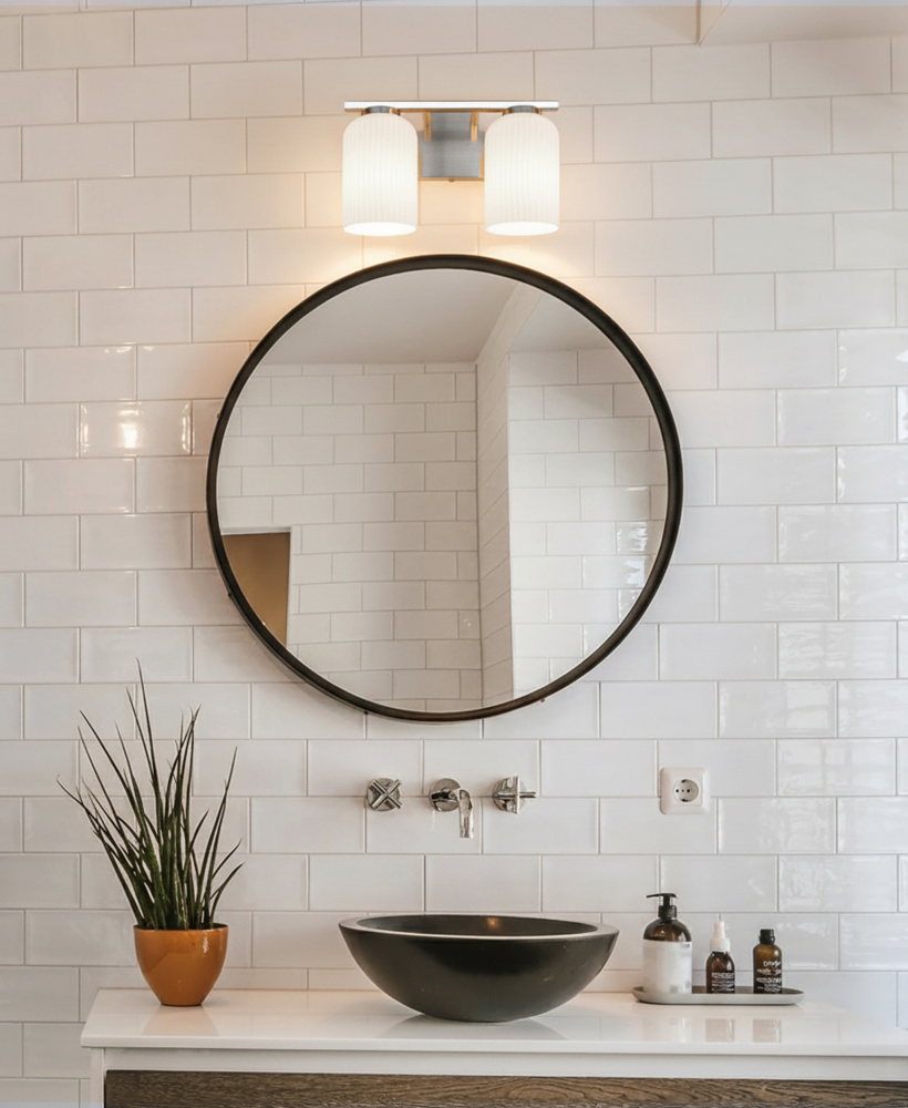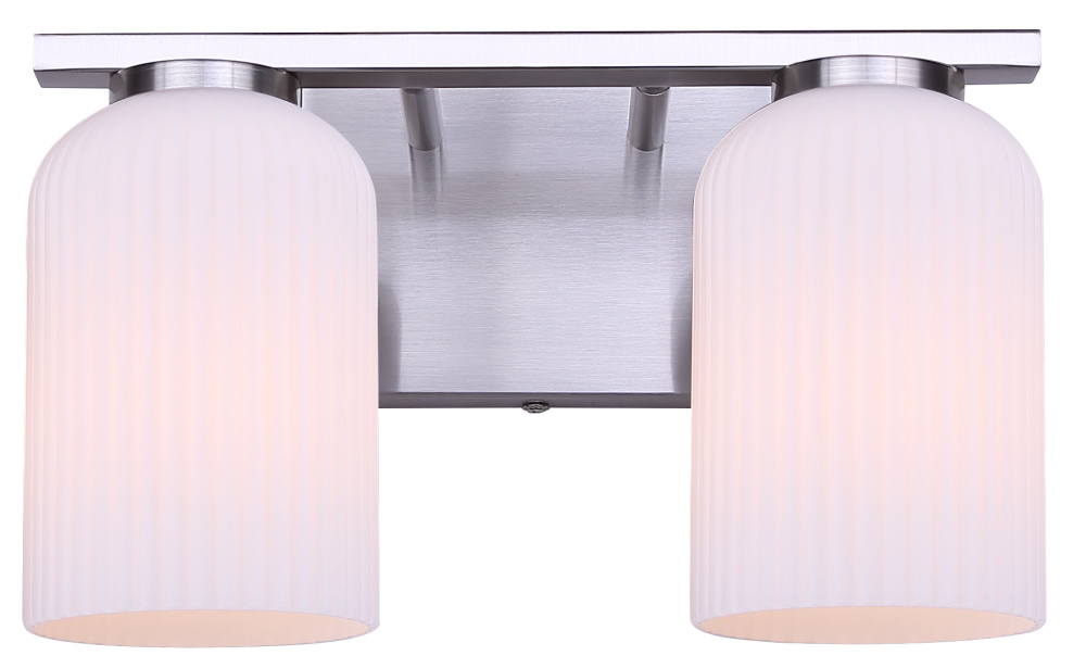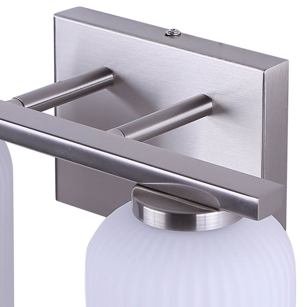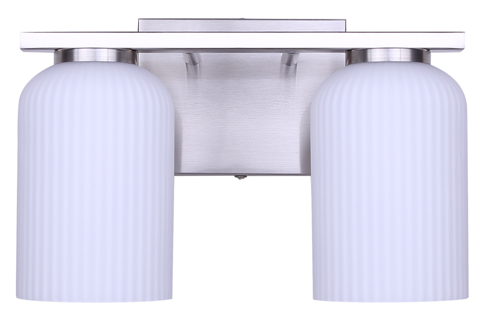 BRAM 2 Lt Vanity Fixture, Brushed Nickel Finish with Ribbed Opal Glass, 60W Type A