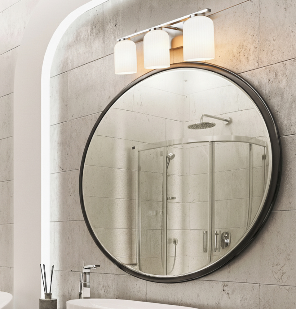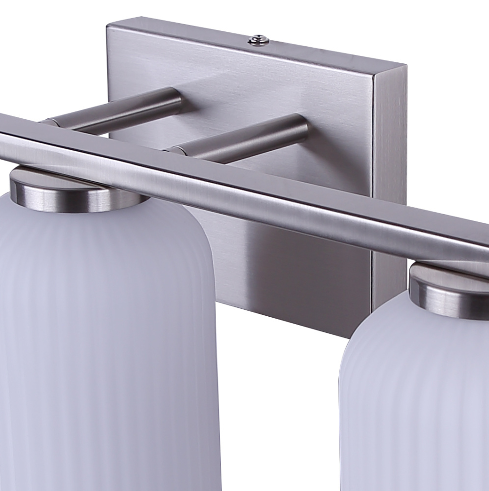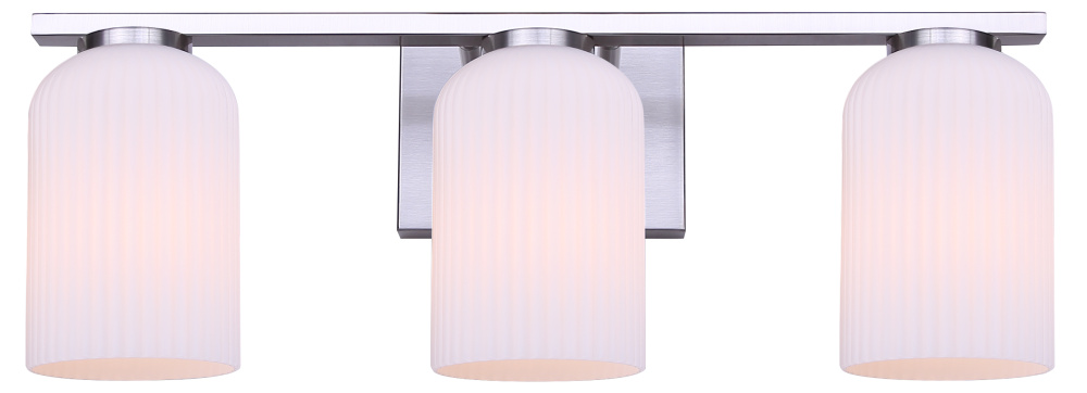 BRAM 3 Lt Vanity Fixture, Brushed Nickel Finish with Ribbed Opal Glass, 60W Type A