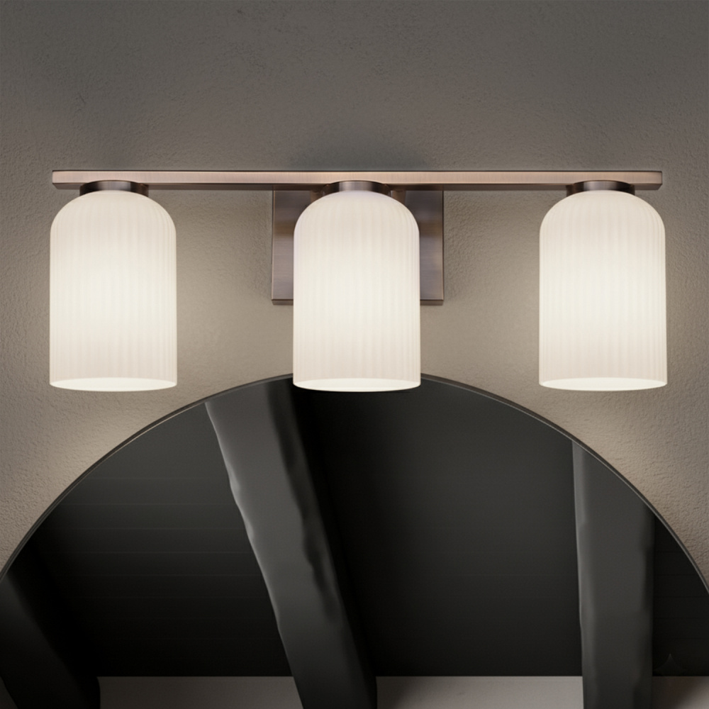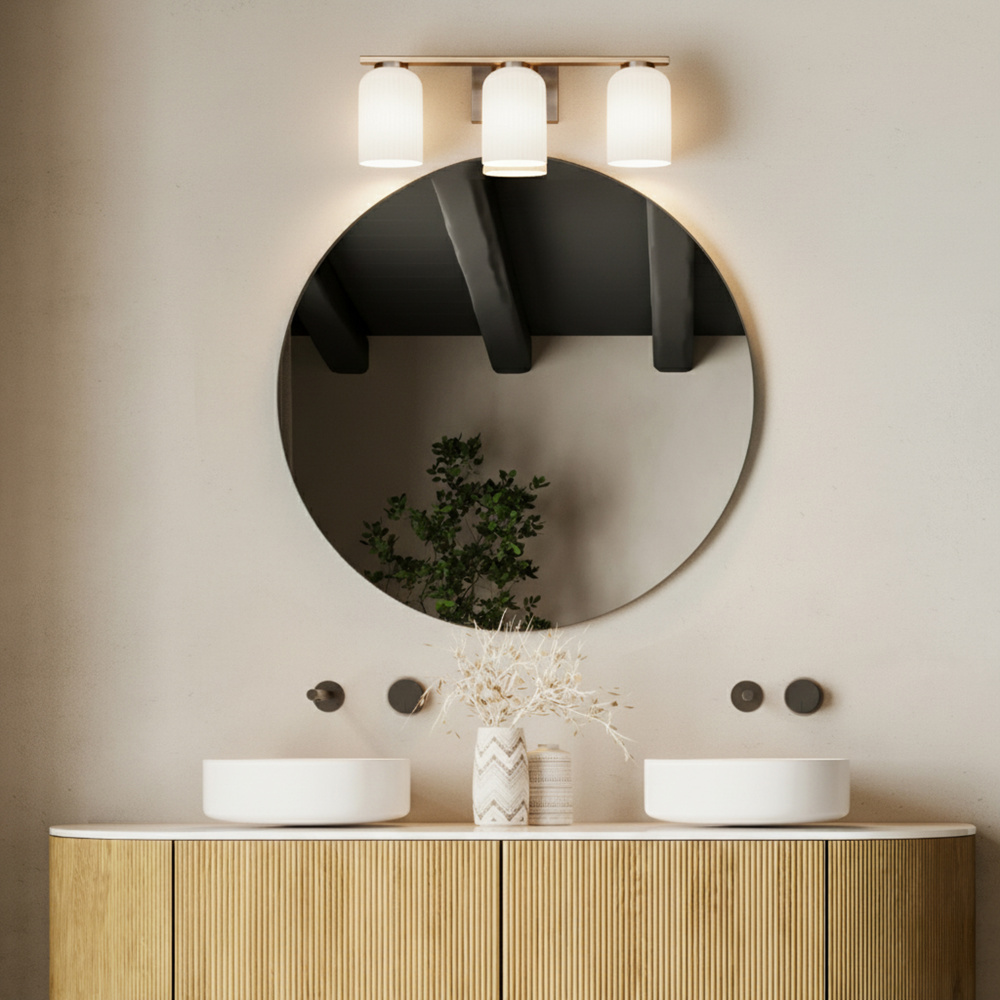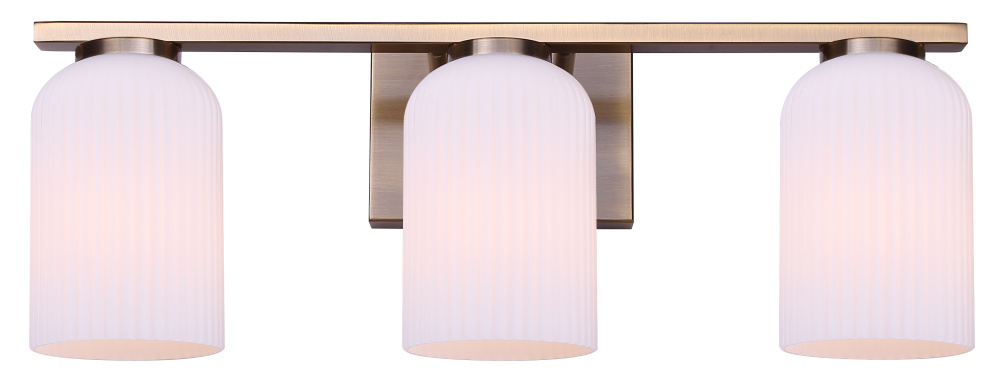 BRAM 3 Lt Vanity Fixture, Gold Finish with Ribbed Opal Glass, 60W Type A