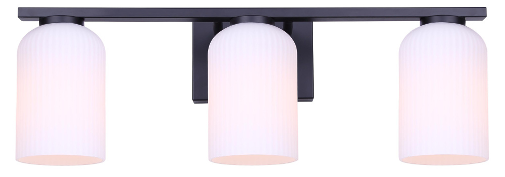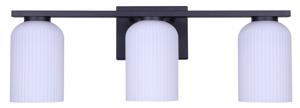 BRAM 3 Lt Vanity Fixture, Matte Black Finish with Ribbed Opal Glass, 60W Type A