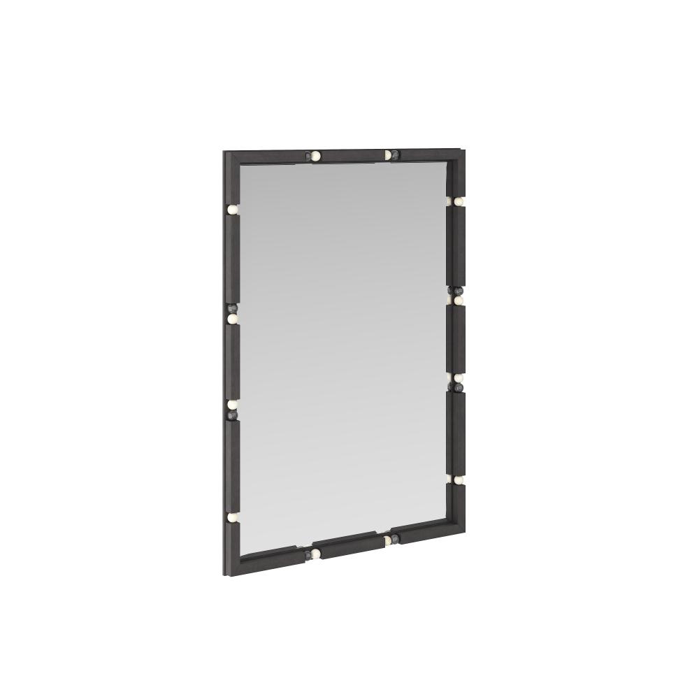 A rectangular frame of ebony finished mango wood is punctuated with marble balls in contrasting hues. These black and white details float about the perimeter, adding a geometric playfulness to the simple form. This versatile accent can be hung both vertically and horizontally. Fitted with security cleat hardware. Finish will vary.