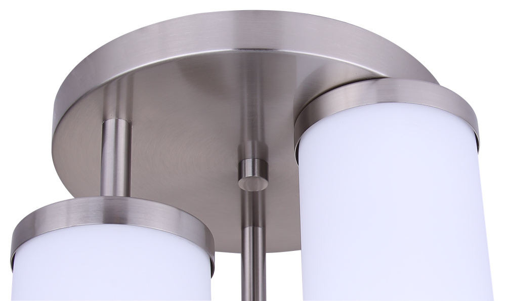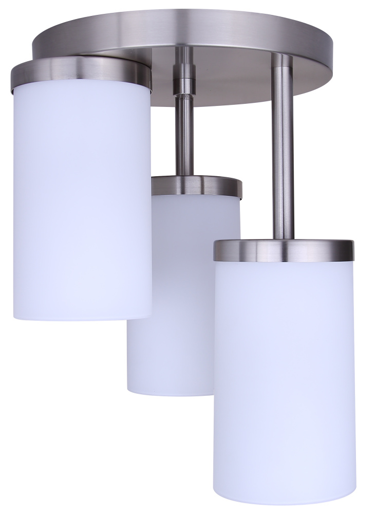 Add a modern touch to your ceiling with the BRITTON 3-light semi-flush mount in brushed nickel. This stylish fixture features three flat opal glass shades that provide bright, even light while complementing both modern and transitional interiors. Measuring 10.62” wide by 12.87” high, it’s perfect for lower ceilings in entryways, hallways, bathrooms, or bedrooms, offering plenty of illumination without taking up too much space. Designed to hold three 60W Type A bulbs, it’s ideal for ambient or task lighting wherever you need it. Easy to install and built to last, the BRITTON semi-flush mount combines function and style, bringing a sleek, refined look to any room.