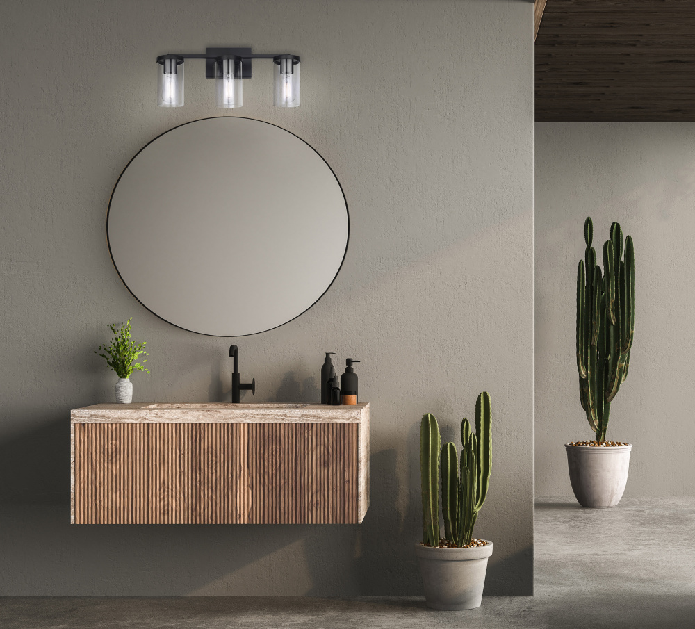 Bring bold sophistication and practical performance to your bathroom with the Britton 3-Light Vanity Light in Matte Black. This eye-catching fixture combines modern industrial style with functional brilliance, featuring three clear glass shades that deliver optimal illumination. The matte black finish makes a strong statement while coordinating beautifully with a variety of decor themes—from modern minimalist to rustic farmhouse.Designed for versatility, the Britton vanity light measures 21 inches wide, making it ideal for single-sink vanities in bathrooms, powder rooms, or even dressing areas. Built to withstand moisture, it’s perfectly suited for damp environments and adds dependable, stylish lighting to your space. With 100W Type A bulb compatibility and easy installation, Britton is the perfect finishing touch for your modern bathroom upgrade.