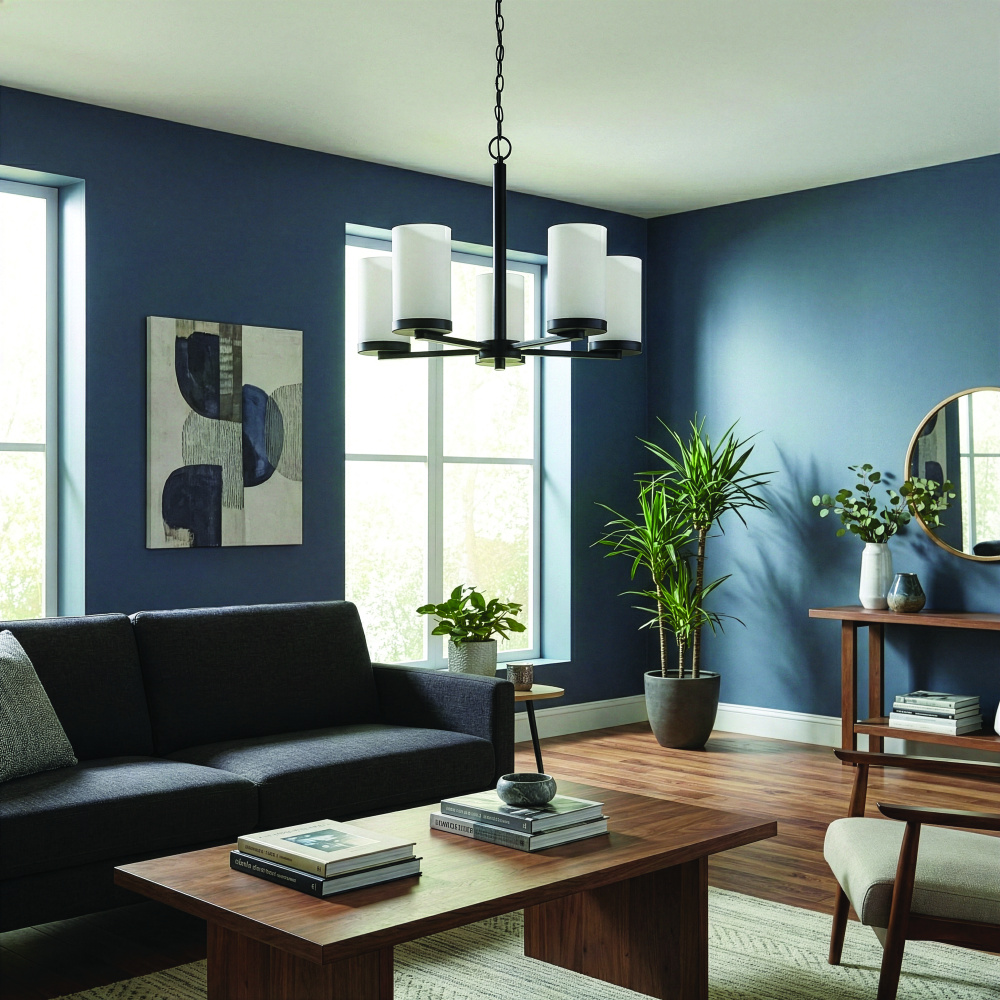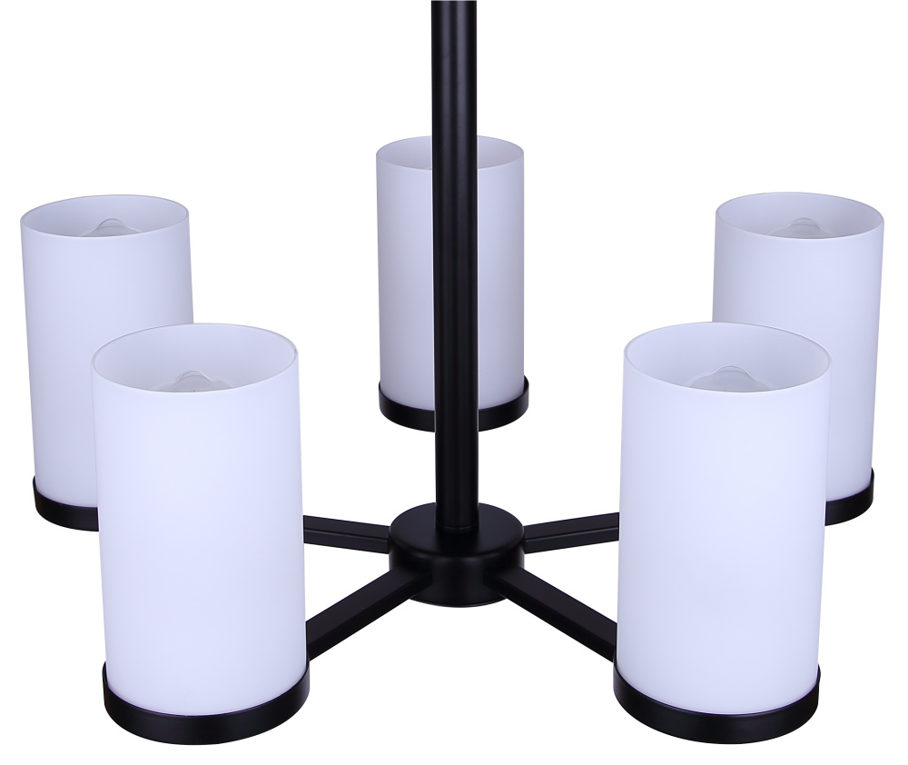 Britton 5-Light Modern Chandelier Matte Black Finish with Opal Glass Shades