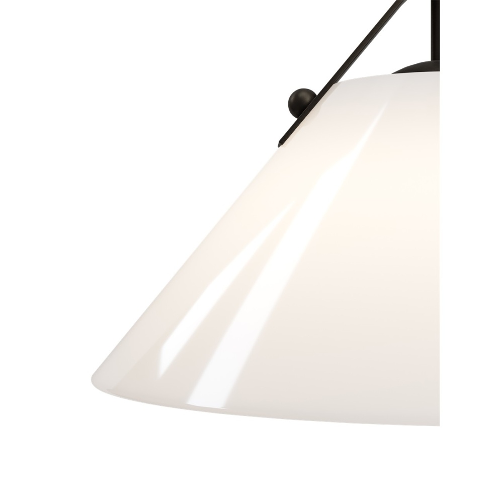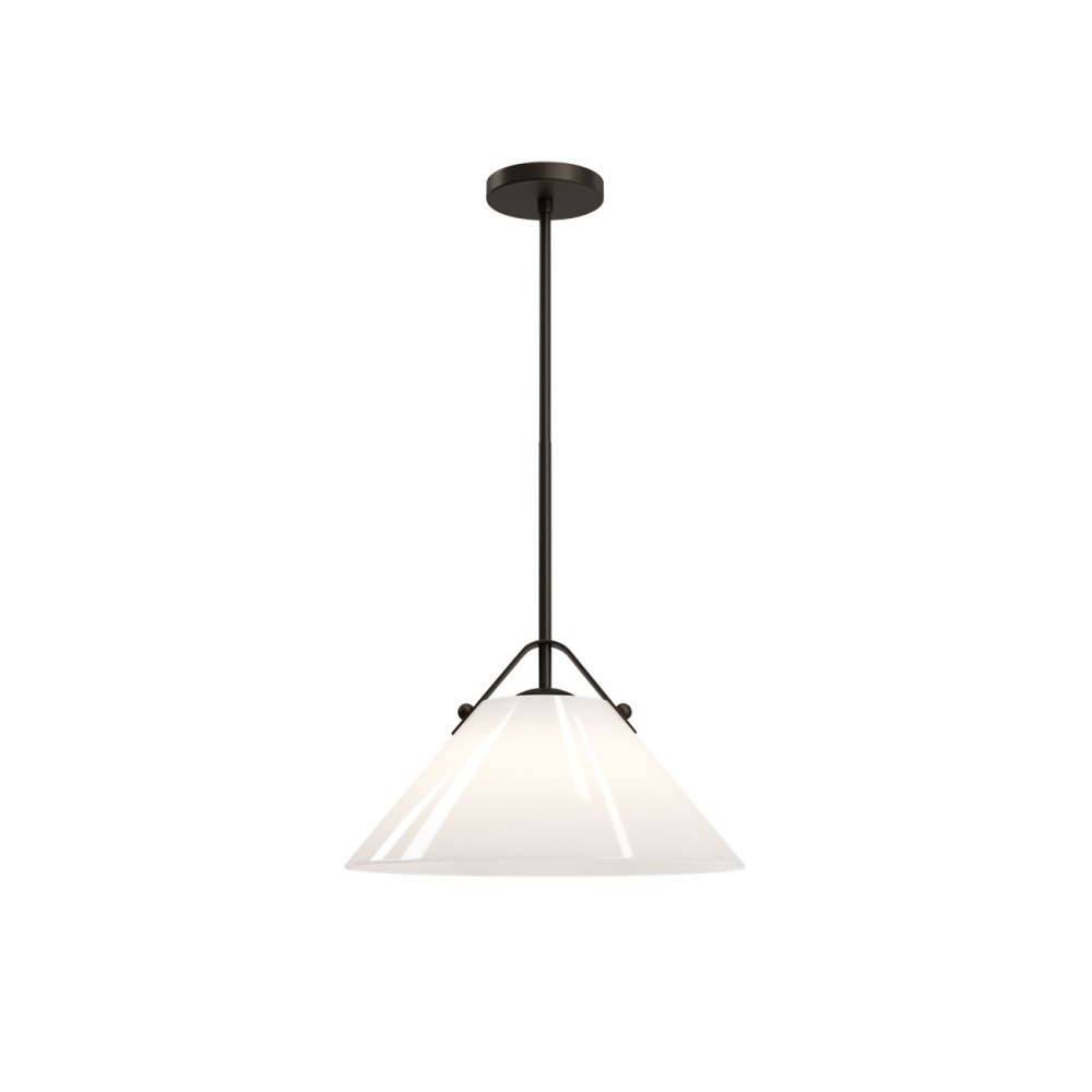 The Bronwen Bronze Pendant is an equestrian-inspired design with a flaring white glass shade fastened to the round canopy with a sophisticated strap—a subtle nod to classic tack hardware. The profile can lean modern farmhouse, though it also complements other design styles. The metal in an oil-rubbed bronze finish is a nice contrast to the paleness of the shade, which has a glossy surface that glows. At 19 inches in diameter, the one-light pendant is dimmable. Adjustable from 18" to 60" with use of included chain/rod kit/cable. If your space calls for a longer drop, additional chain/rods/cable is available for purchase.