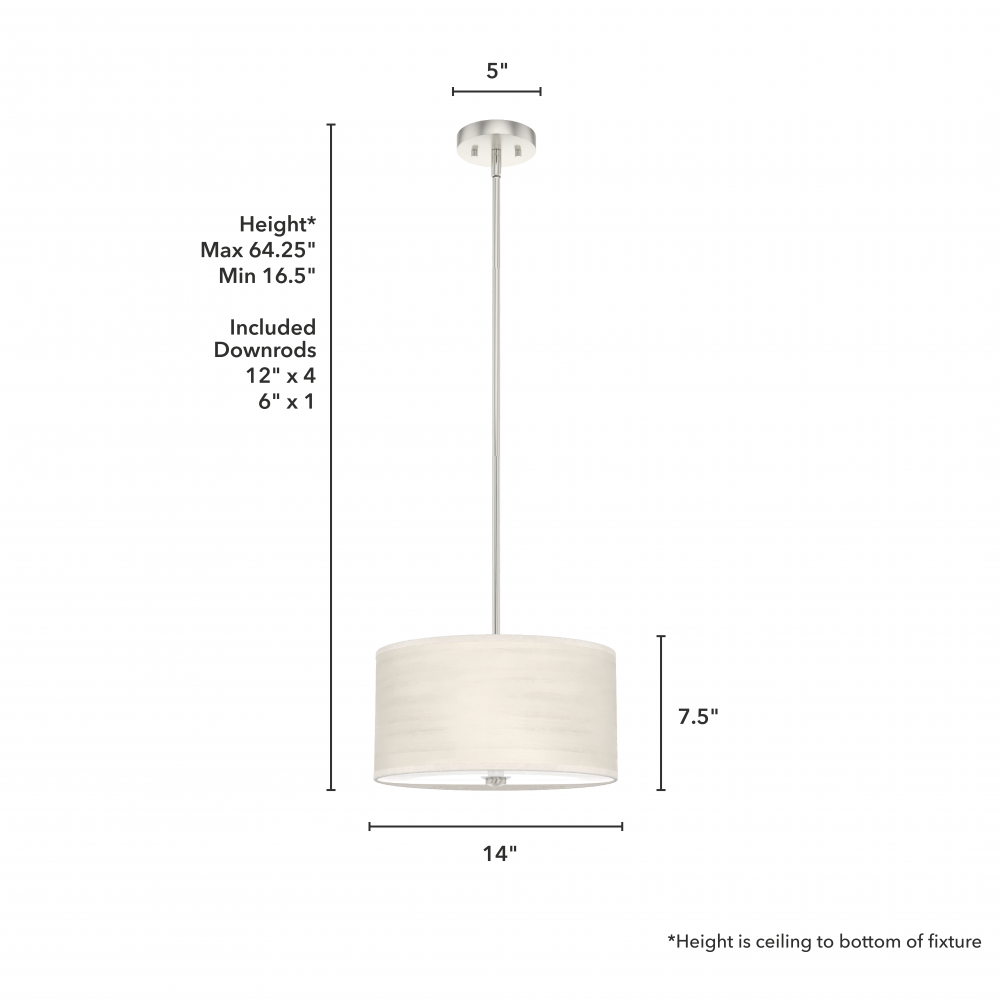 CUSTOMIZABLE HANGING OPTIONS: With the minimum required downrod, the hanging length is 16.5 inches. When using all of the included downrod, the maximum hanging length is 64.25 inches.
