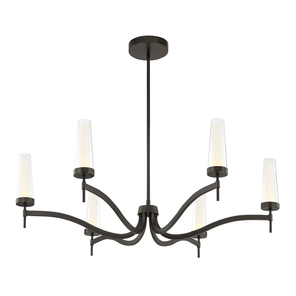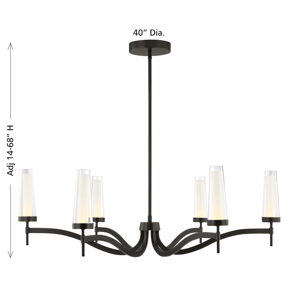 The Savoy House Butler 6-light chandelier is an intriguing update to traditional lighting style. Sweeping arms and double-glass shades bring a graceful, candle-inspired look into the modern era. The integrated LED light sources bring a bright glow while the Mediterranean Bronze finish adds gorgeous radiance. Butler is 40" in width and has an adjustable height ranging from 18" to 60". Comes with four 12" downrods and one 6" downrod.