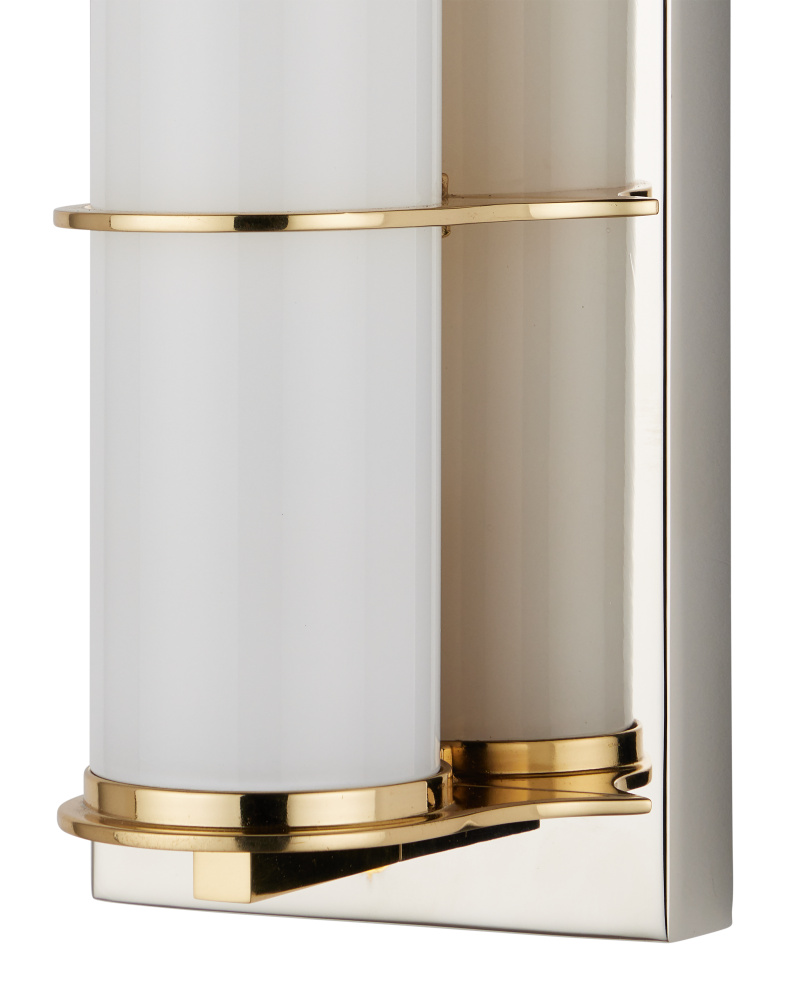 The conical glass cones on the Byford Nickel Bath Wall Sconce create a soft, diffused glow, perfect for bringing a cozy ambience to any bathroom. The bath sconce is made of brass in a polished nickel finish, and the glass diffusers have a hammered texture to them. These are stylish sconces for lighting up a bathroom vanity or a powder room.