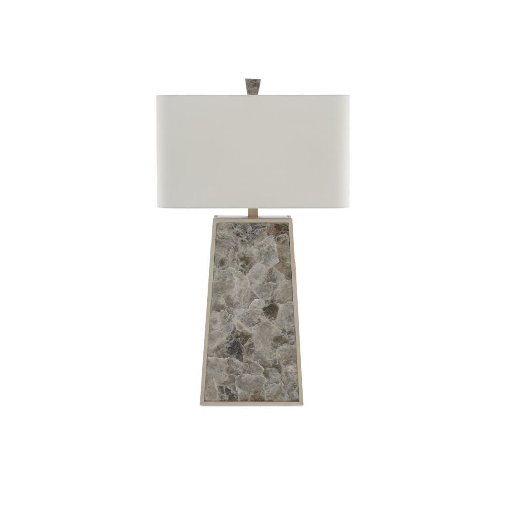 Being able to take an elemental material like mica and turn it into a chic stylistic statement is one of the strengths of our design team. Take our Calloway Table Lamp as an example. The body of this remarkable creation is covered in mica that has been treated to a light mica finish. The natural material is surrounded by a wood frame in a silver leaf finish that adds tremendous sophistication to the composition. A mica finial fastens the off-white shantung shade to the piece to serve as a crowning touch.