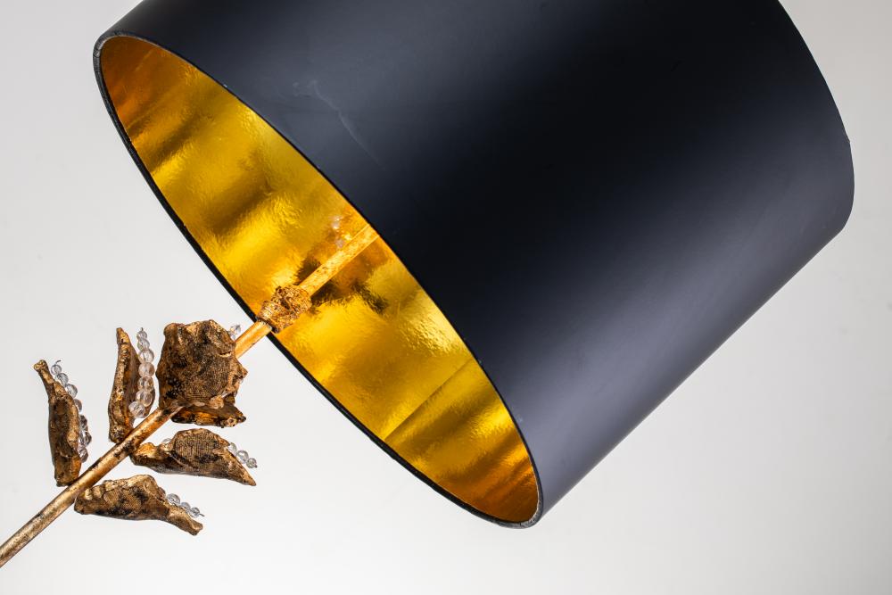 Black drum shade lined with gold leaf inside the shade