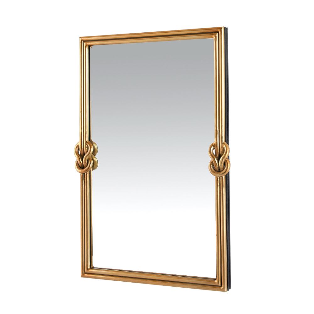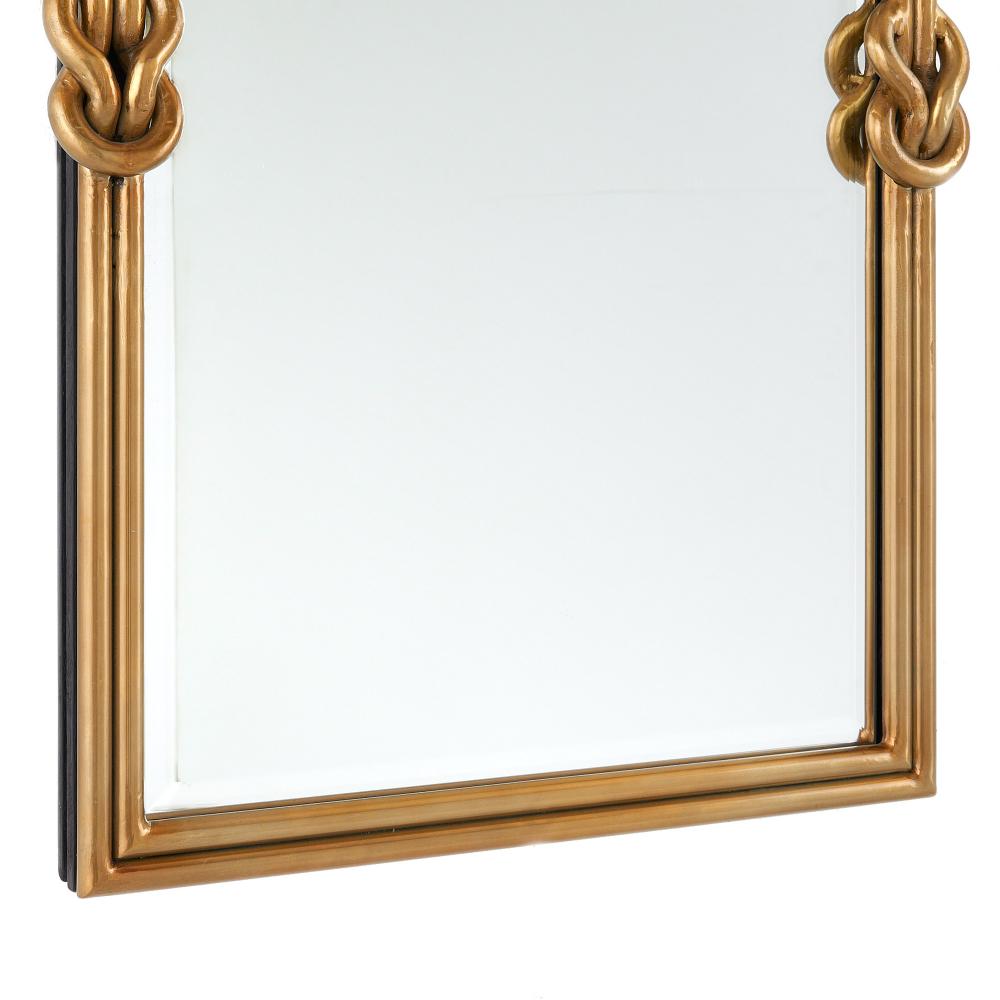 A nautical-but-nice twist on coastal style, this beveled mirror’s elegant frame is punctuated with dynamic textural details. Iron plated in antique brass, it is designed to be displayed both vertically and horizontally. Cleat at back for secure display.
