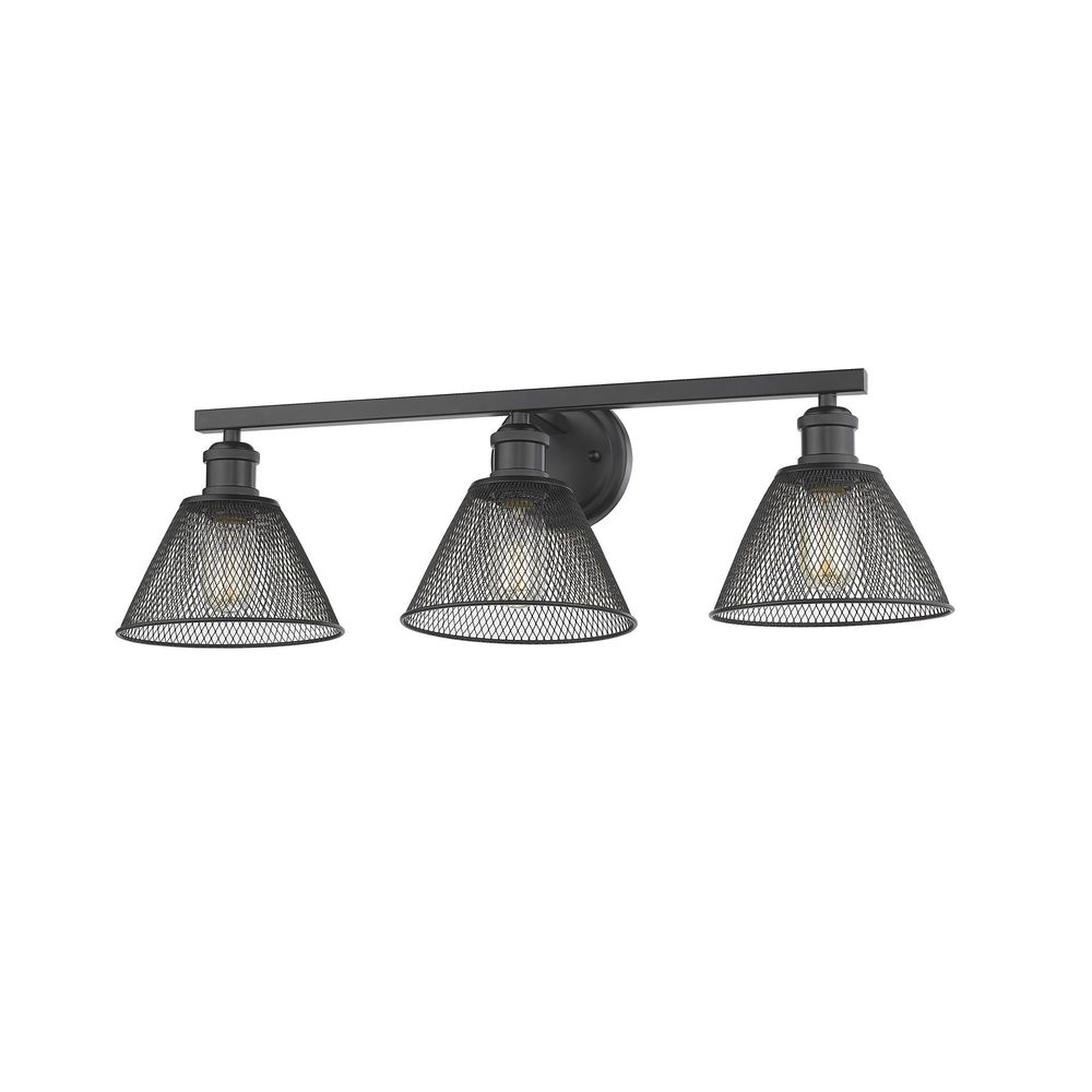 Carver 3-Light Bath Vanity in Matte Black with Mesh Shades