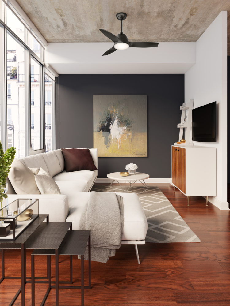 A contemporary design with a little flare of retro, the Wisp LED ceiling fan brings a balance of finesse and joviality into your home. The unique curvature in the blades adds a touch of personality to an otherwise clean, elegant design. The Wisp features an integrated light kit with a dimmable, energy-efficient LED bulb that shines a soft light through cased white glass. The result is a composition with an elegant, airy aura that will inspire joy and comfort throughout the entire room. From the makers of the World’s Finest Ceiling Fan®.