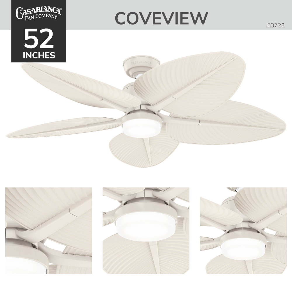 The Coveview Outdoor Ceiling Fan with LED Light, 52-inch, brings coastal charm and energy efficiency to your home. Perfect for living rooms, bedrooms, and covered outdoor spaces like patios or porches, this fan features a powerful yet whisper-quiet 6-speed Eco Whisper DC motor for superior airflow efficiency. Easily adjust fan speed and dim the light using the included wall control or handheld remote. Combining breezy coastal style with advanced functionality, the Tropic View enhances comfort, ambiance, and style in every space it touches.