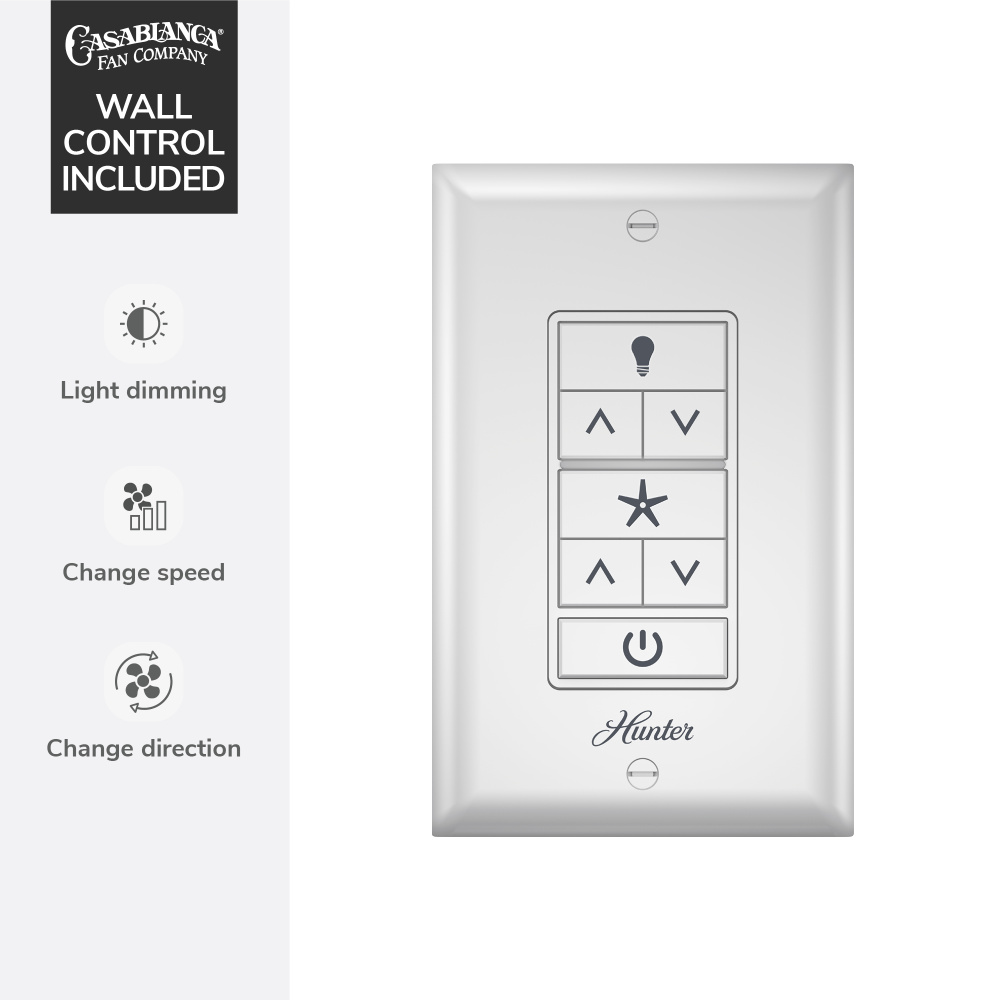 Includes Wall Control for easy speed and lighting adjustment right from your wall switch
