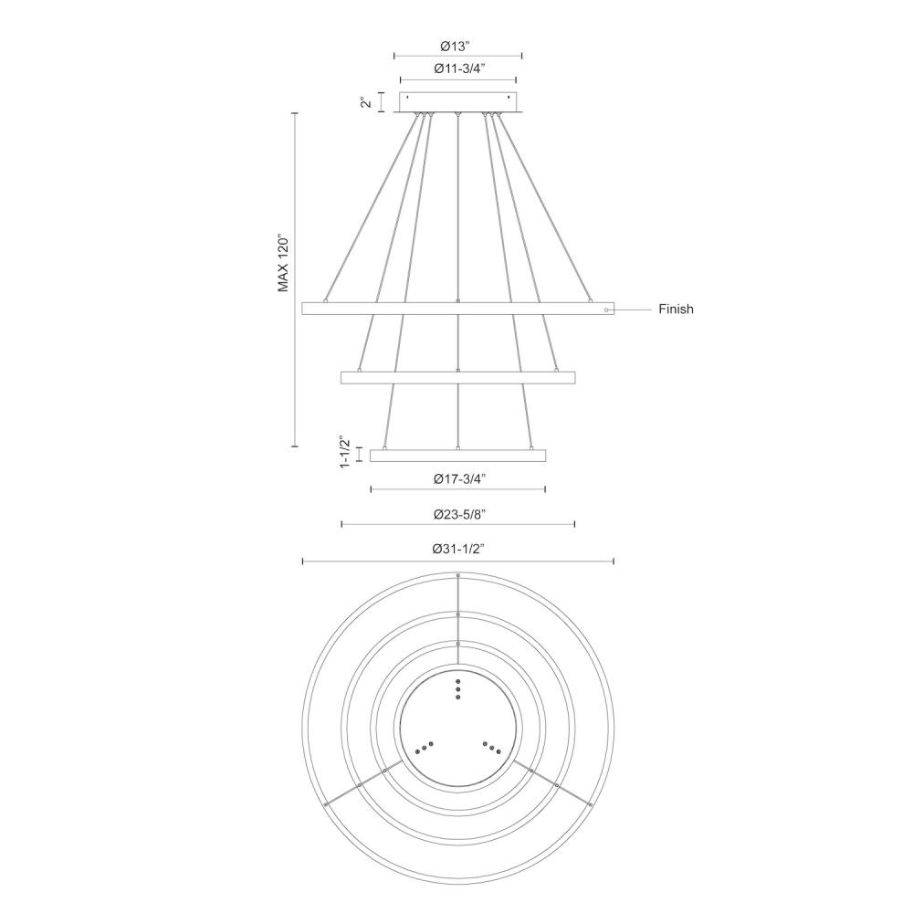 Extruded and rolled aluminum with rectangular profile. Flush silicone diffuser. Three tiers. Matte powder-coated finish. Up and down light.