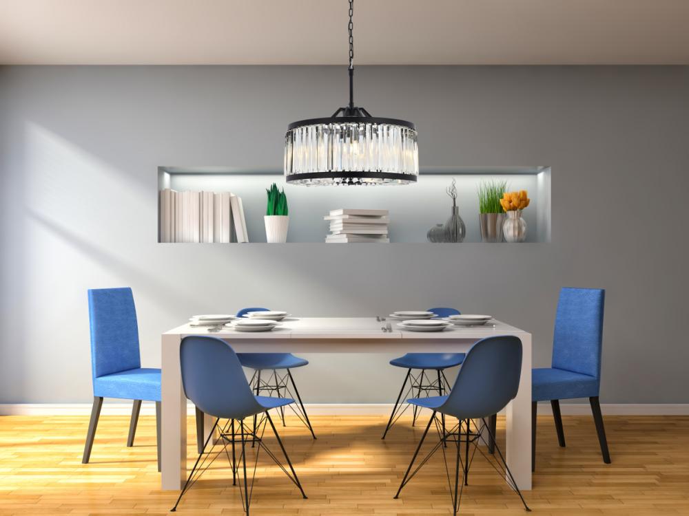 An infinity of light, caught in a circle of crystal bars in clear, golden teak, or Silver shade, the Chelsea collection will bring a shimmer of brilliance to your home. The circular steel frame in a Matte Black or polished-nickel finish lends subtle strength to this chandelier design. The Chelsea collection adds transitional grace especially to a kitchen, bedroom, or dining room