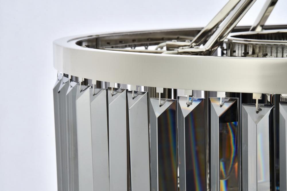 An infinity of light, caught in a circle of crystal bars in clear, golden teak, or Silver shade, the Chelsea collection will bring a shimmer of brilliance to your home. The circular steel frame in a mocha-brown or polished-nickel finish lends subtle strength to this chandelier design. The Chelsea collection adds transitional grace especially to a kitchen, bedroom, or dining room.