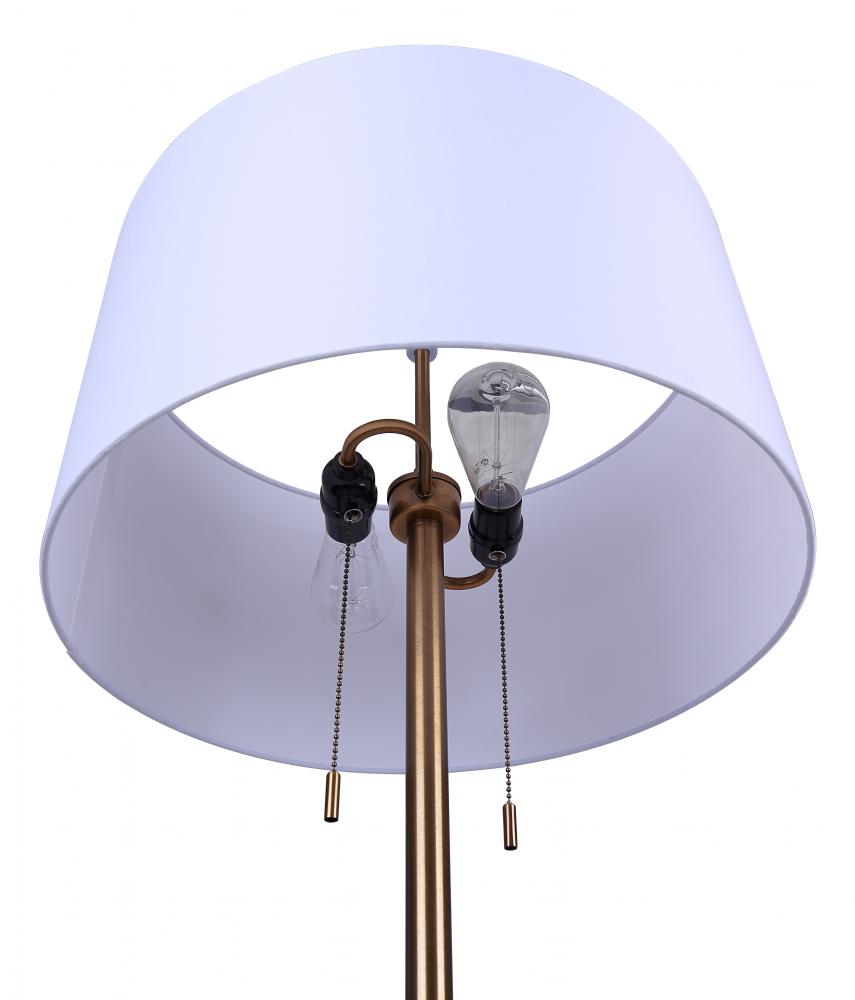 The Clara 2-Light Floor Lamp offers a blend of timeless elegance and modern style, making it a standout piece in any room. Featuring a chic gold finish paired with a white fabric shade, this lamp brings a sophisticated touch to your living room, bedroom, or office. With dual on-off pull chains, you can control each light individually, allowing for customized lighting depending on your needs. Standing 61 inches tall and 19 inches wide, this floor lamp is the perfect size to enhance the ambiance of any space. The durable metal construction and easy assembly make the Clara floor lamp a stylish and practical addition to your home decor.