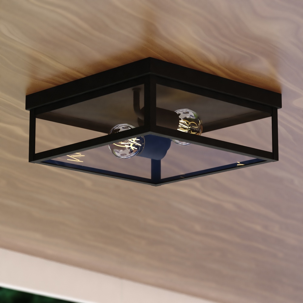 Clinton 12-in. W 2 Light Outdoor Flush Mount Matte Black