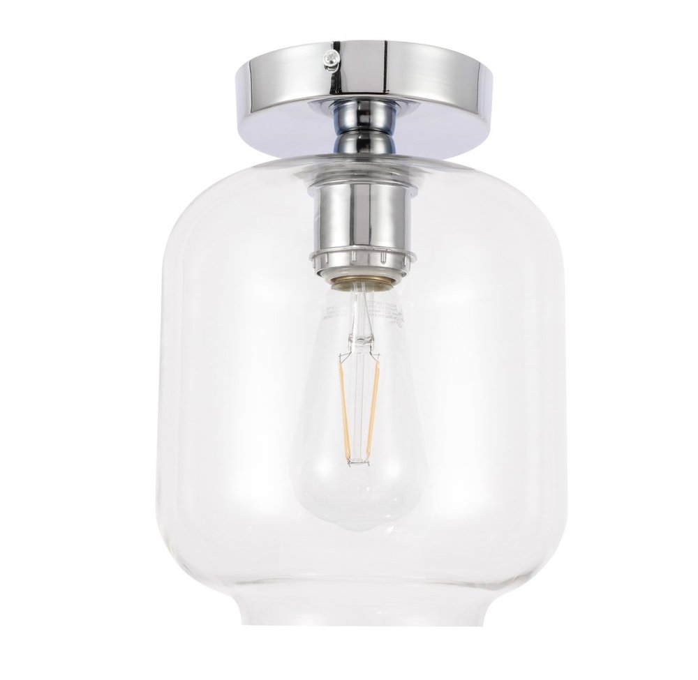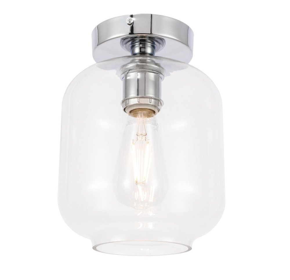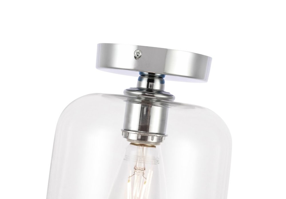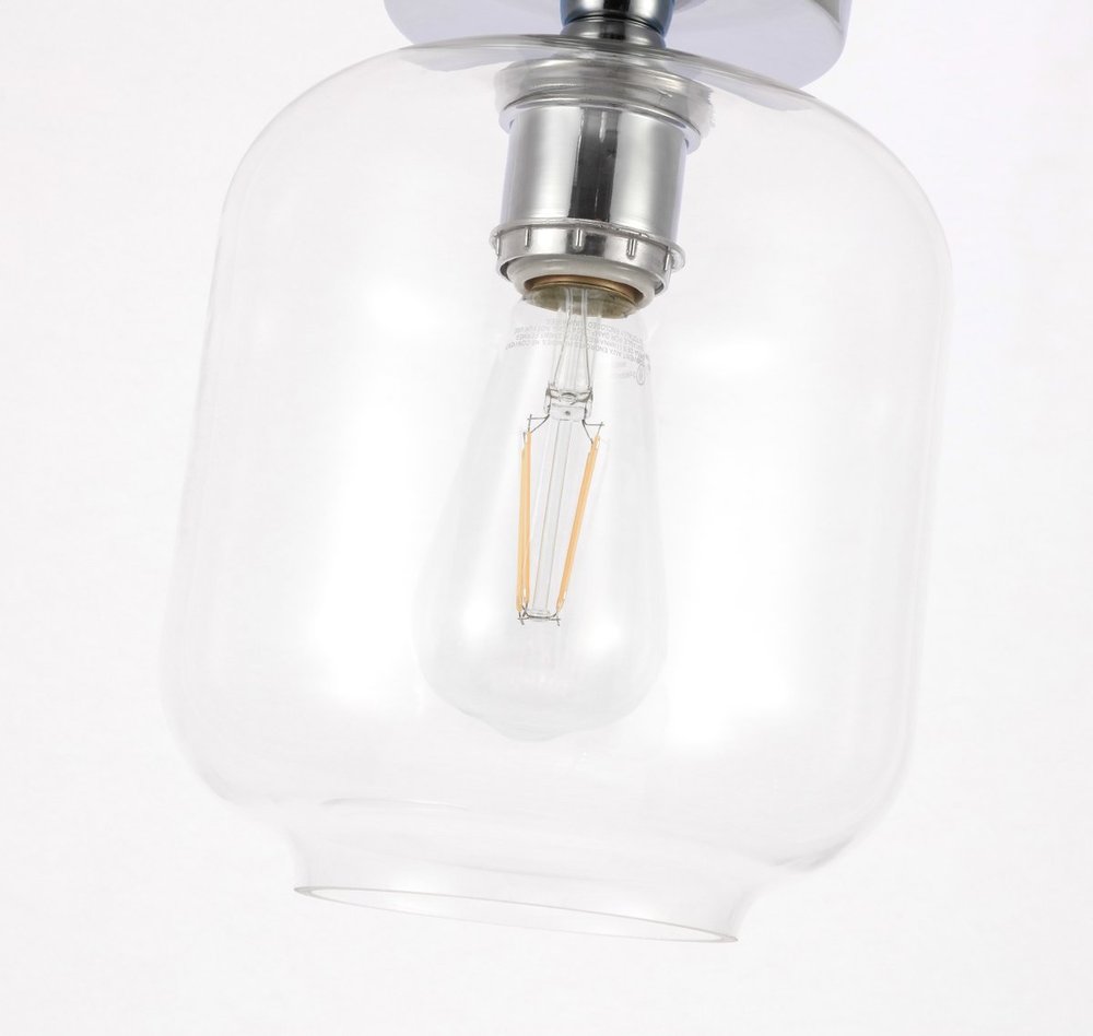 The Collier Collection of lights will be sure to have your guests admire your modern sense of style with the beautiful simplicity of its shape and form. This flush mount allows brilliant illumination to shine and radiate, allowing for your room to be center stage, and despite its minimalism, its design is far from boring--available in a brass, chrome, or black finish, with either a clear or frosted cylinder glass shade. The sleek organic curves of the mount and the cylinder that encapsulates the bulb will enhance your bathroom, foyer, or hallways, allowing for you to always live a chic and fashionable lifestyle, no matter where you are (light bulbs not included).
