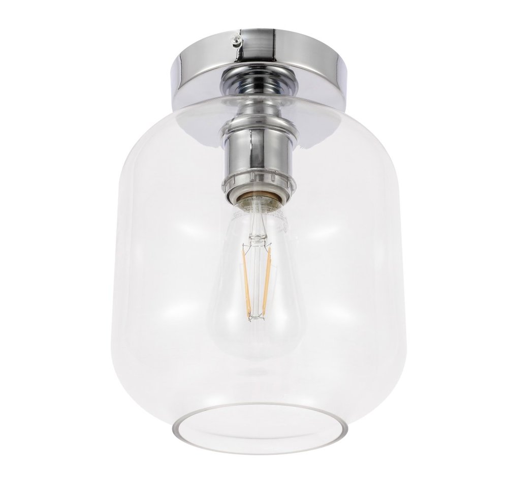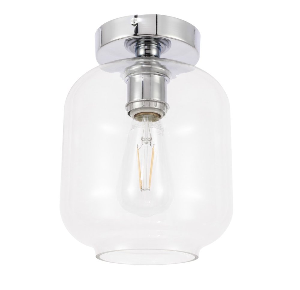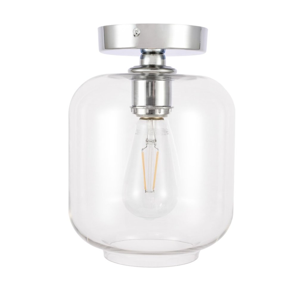 The Collier Collection of lights will be sure to have your guests admire your modern sense of style with the beautiful simplicity of its shape and form. This flush mount allows brilliant illumination to shine and radiate, allowing for your room to be center stage, and despite its minimalism, its design is far from boring--available in a brass, chrome, or black finish, with either a clear or frosted cylinder glass shade. The sleek organic curves of the mount and the cylinder that encapsulates the bulb will enhance your bathroom, foyer, or hallways, allowing for you to always live a chic and fashionable lifestyle, no matter where you are (light bulbs not included).