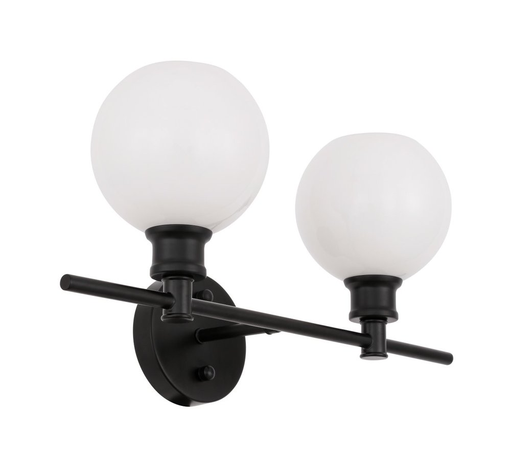 The Collier Collection of lights will be sure to have your guests admire your modern sense of style with the beautiful simplicity of its shape and form. The clean lines of the ball shaped shades create the juxtaposition of intricate simplicity, achieving a style that has both form and function. This wall lamp can be oriented facing up or down, but will always illuminate your room. Available in a brass, chrome, or black finish with either a clear or frosted ball glass shade, it is the perfect wall lamp to enhance your bathroom, foyer, or hallways, allowing you to always live a chic and fashionable lifestyle (light bulbs not included).