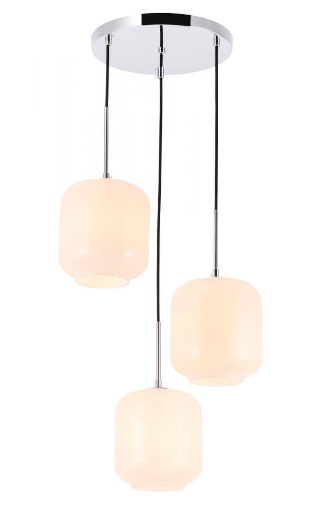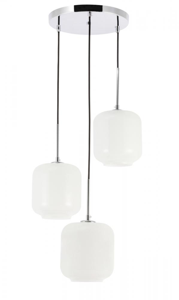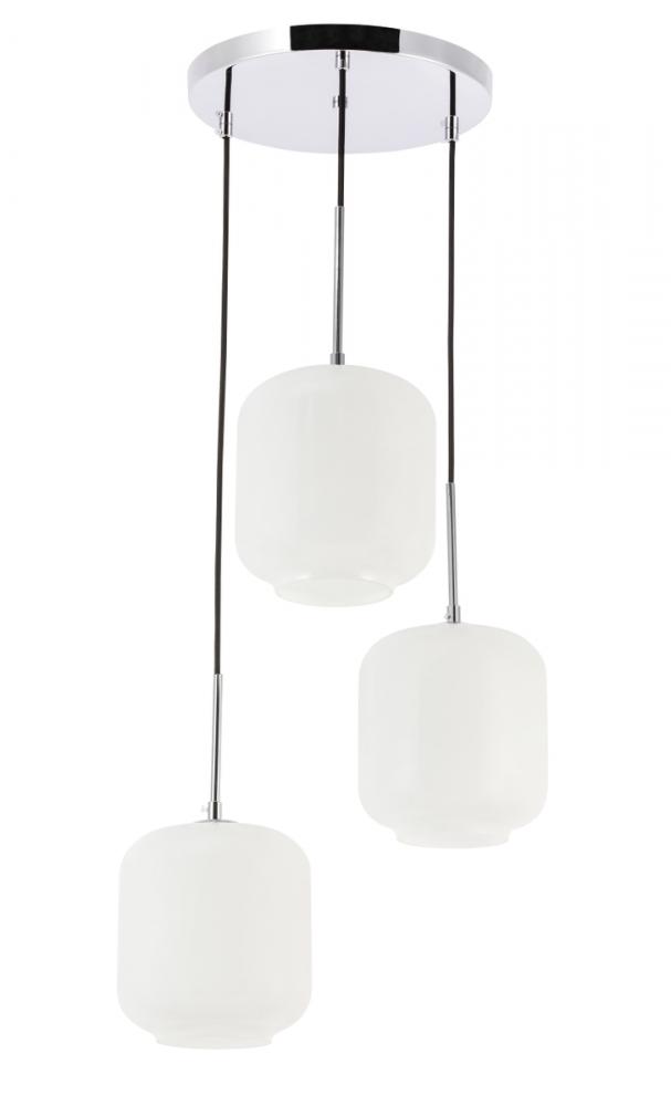 The Collier Collection of lights will be sure to have your guests admire your modern sense of style with the beautiful simplicity of its shape and form. The canopy supports three pendant lights that can be adjusted to different heights in order to create dramatic levels of lights and shadows. The pendant's clean lines created by the cords and curvature of the cylinder shades makes this the perfect lighting addition to any home that is in need of a chic modern flair. Available in a brass, chrome, or black finish, with either a clear or frosted cylinder glass shade, enhance your dining room, living room, or bedroom with the Collier Collection hanging pendant and live a chic and fashionable lifestyle, no matter where you are (light bulbs not included).