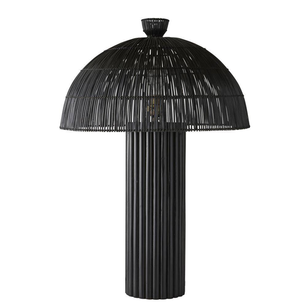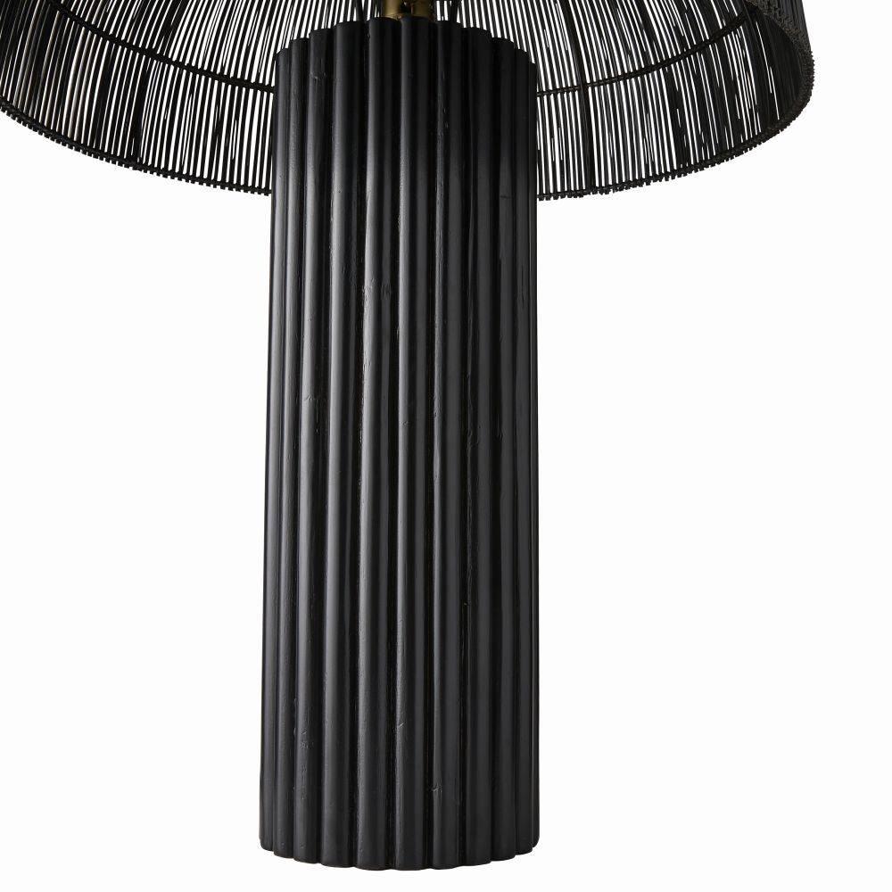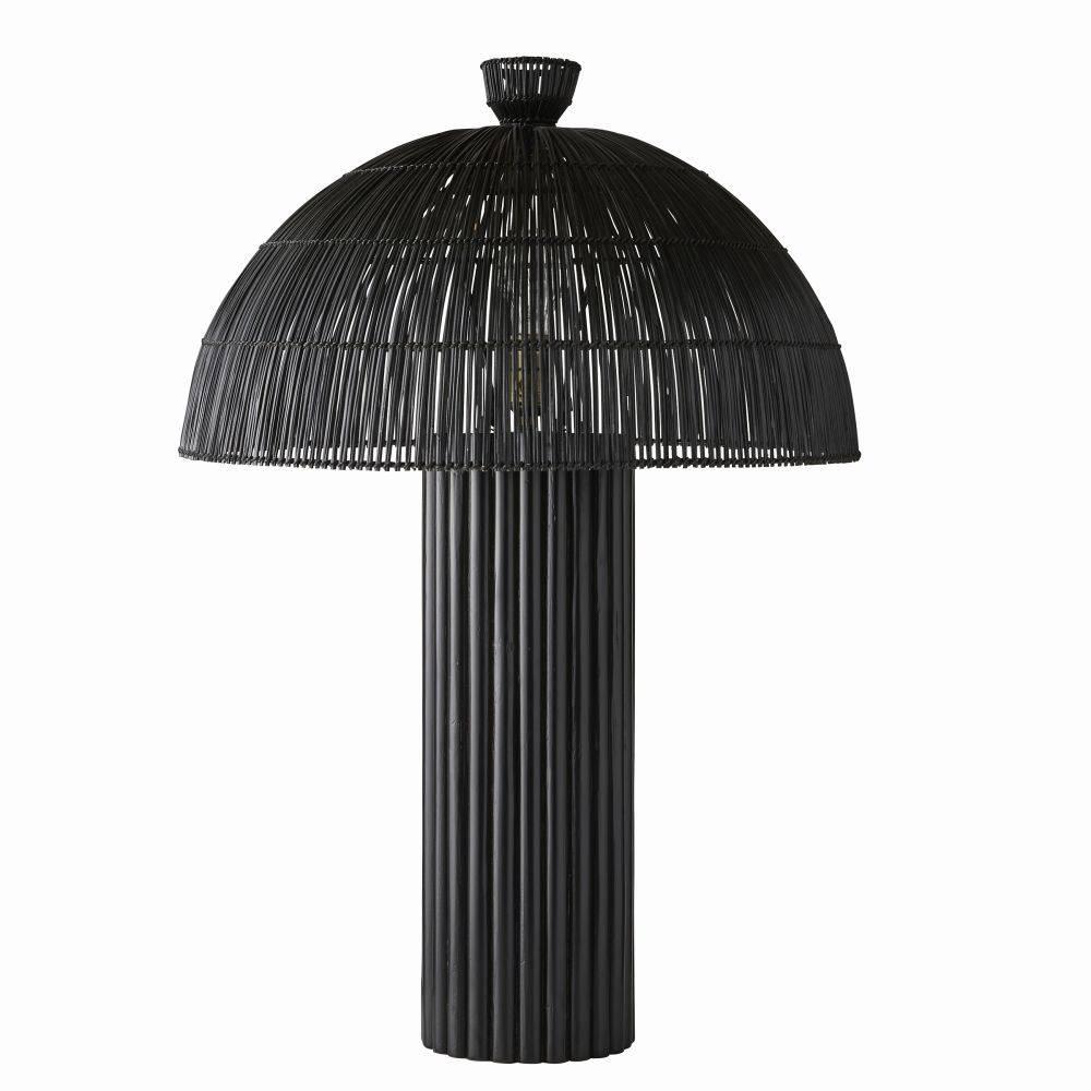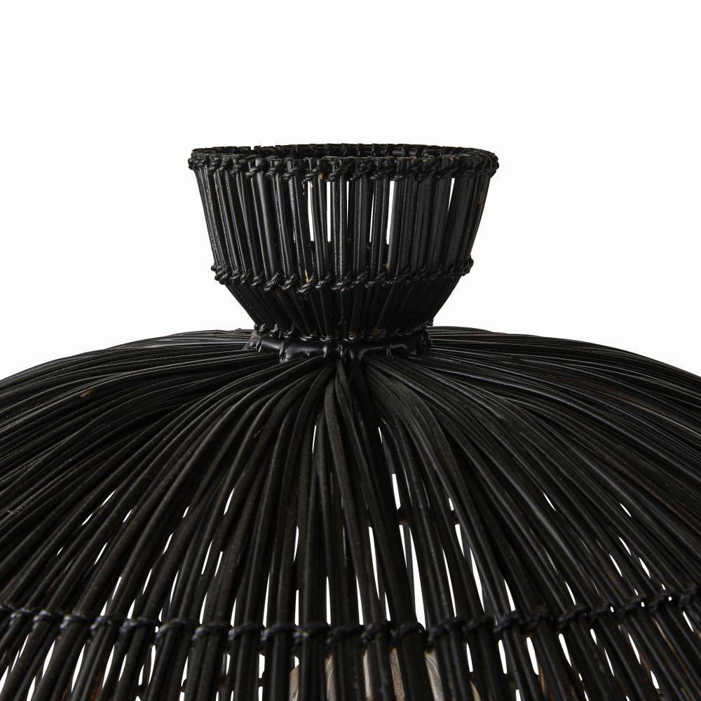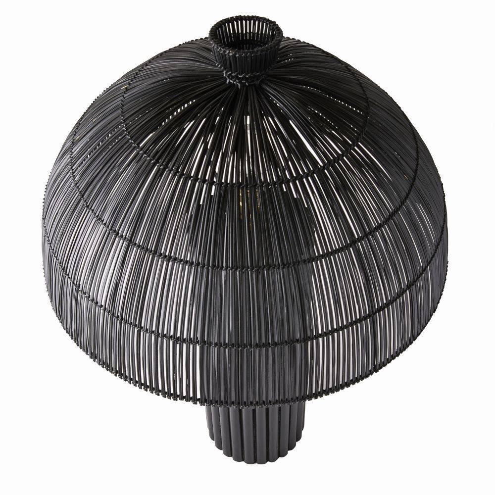 Our black wicker rattan Como offers a monochromatic mix of natural and tactile materials. Designed so the dome shade seems to seamlessly blend into its column base the slight transparency of the woven reeds allows alluring light to peek through. Antique brass hardware. Finish will vary.