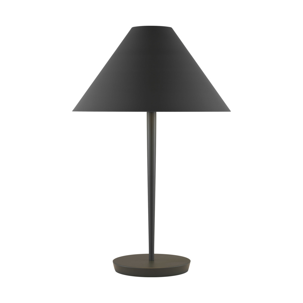 The closed-top conical metal shade is harmoniously completed by the stem’s unique and subtle reverse-taper shape