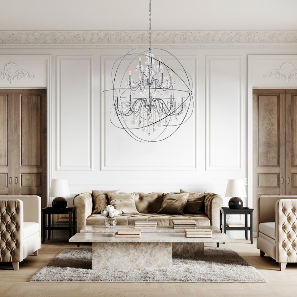 Incorporate pleasant charm into your home with the Cordelia pendant light collection in a chrome finish. Dressed in luxurious crystals that dazzle with grace and refined modernity and encased within the metal gyrospheric halo, this lovely hanging light will gracefully illuminate any room.