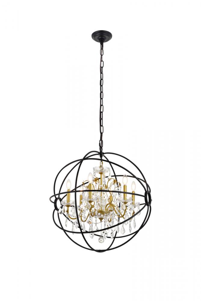 Incorporate pleasant charm into your home with the Cordelia pendant light collection in a two-toned black and gold finish. Dressed in luxurious crystals that dazzle with grace and refined modernity and encased within the metal gyrospheric halo, this lovely hanging light will gracefully illuminate any room.