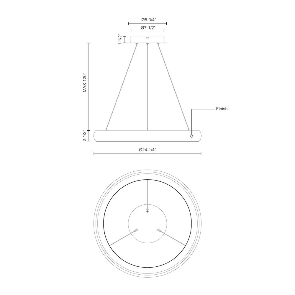 A curved band of powder-coated aluminum arcs around a central void forming and encapsulating an illuminated ring. Held within the perimeter structure of the CORTANA pendant is a circumferential LED light array spreading uniform radiance via the polymeric diffuser loop. Available in multiple sizes.