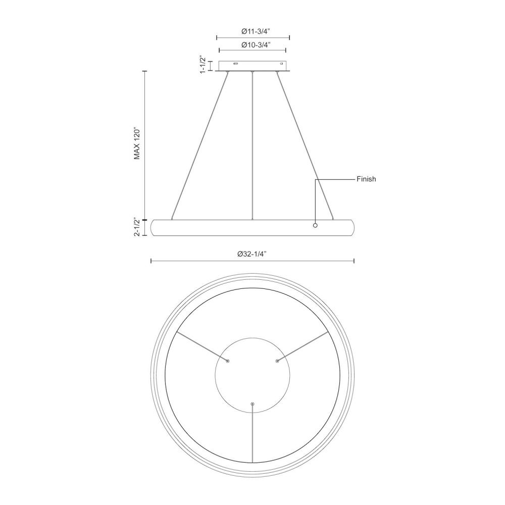 A curved band of powder-coated aluminum arcs around a central void forming and encapsulating an illuminated ring. Held within the perimeter structure of the CORTANA pendant is a circumferential LED light array spreading uniform radiance via the polymeric diffuser loop. Available in multiple sizes.