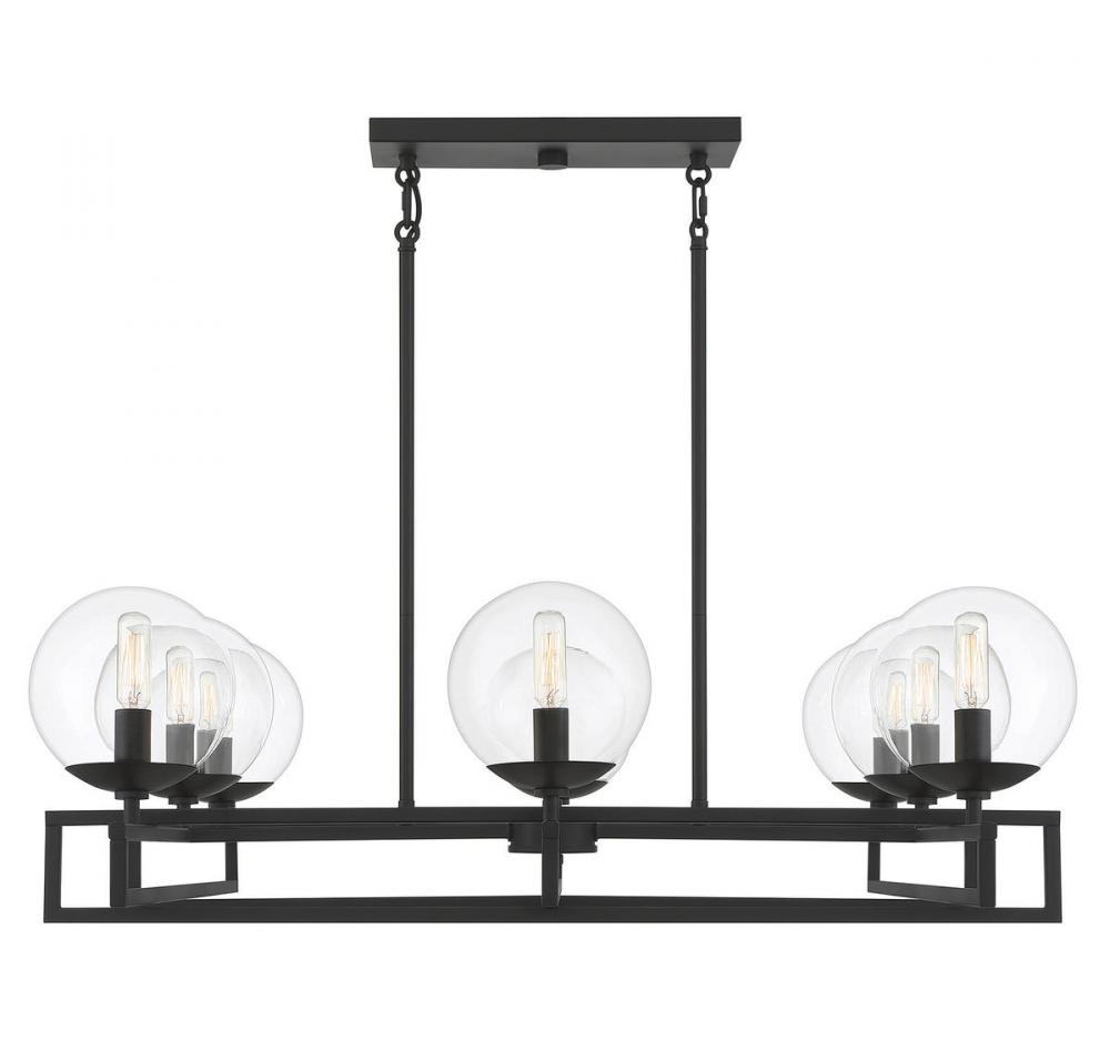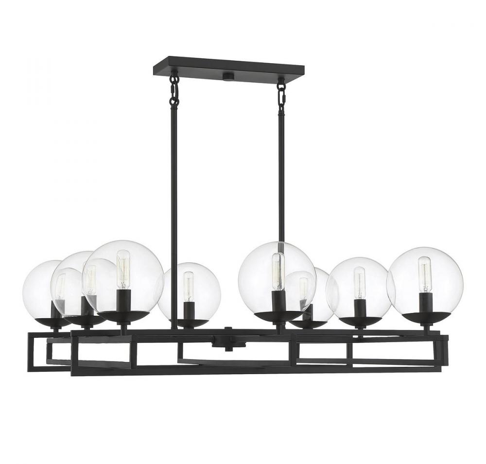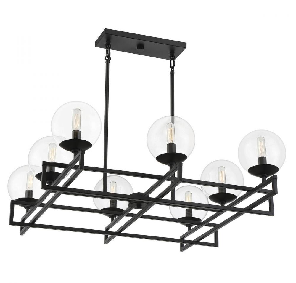 There’s a certain beauty to be found in the idea of an intersection, the place where everything comes together. The Savoy House Crosby 8-light chandelier showcases that beauty with lights nestled in clear glass orbs and placed strategically on intersecting rows. Finished in matte black. Crosby is 30" in length, 30" in width and has an adjustable height ranging from 15.75" to 61.75". It uses eight candelabra size bulbs of up to 60 watts per bulb. Comes with eight 12" downrods and two 6" downrods, plus 80" of cord.