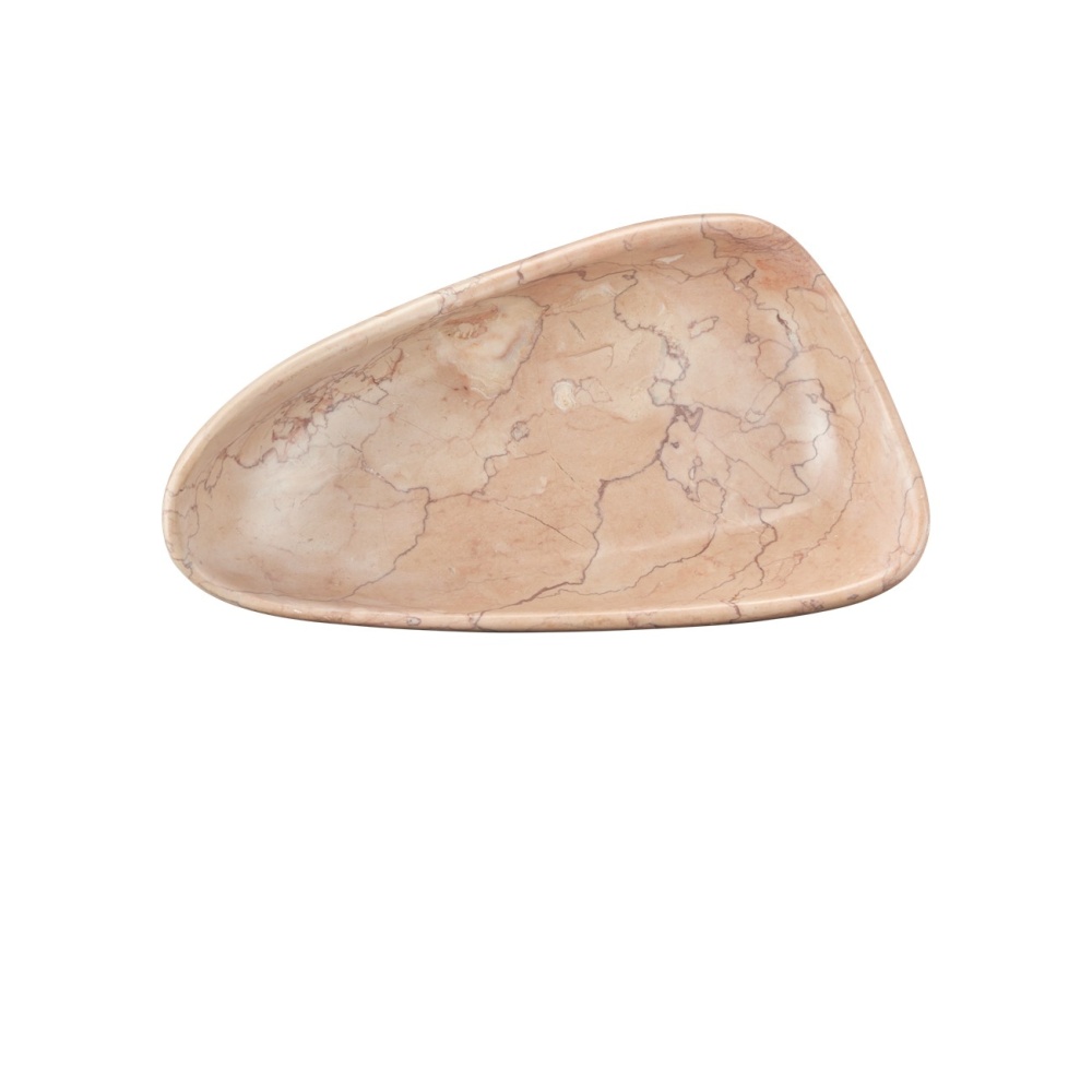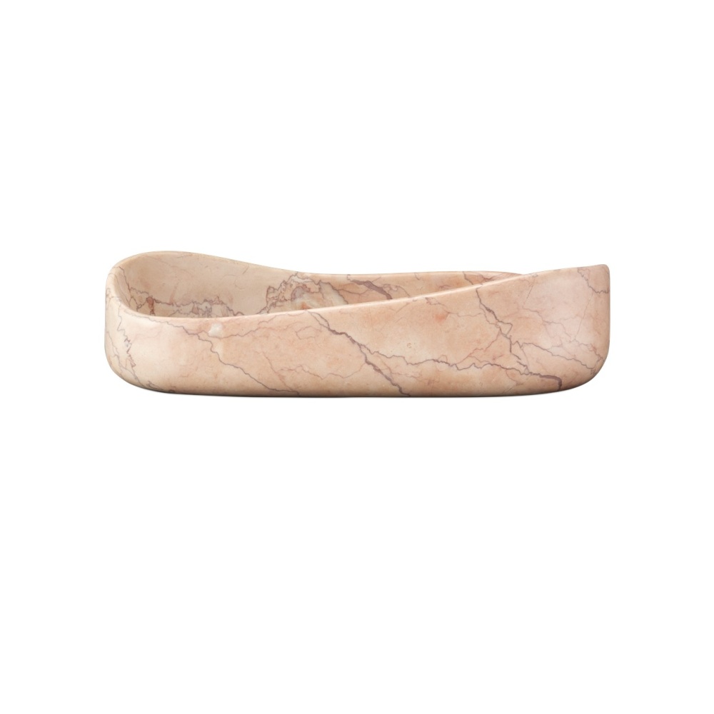 The Deaton Rosa Marble Bowl is an organically shaped decorative accessory with an undulant personality. Made of Rosa Cappuccino marble, the vessel has soft pink surfaces with darker veining running across them to create a lively pattern. This is a generously sized decorative bowl at 14.5 inches long by 8.5 inches wide.
