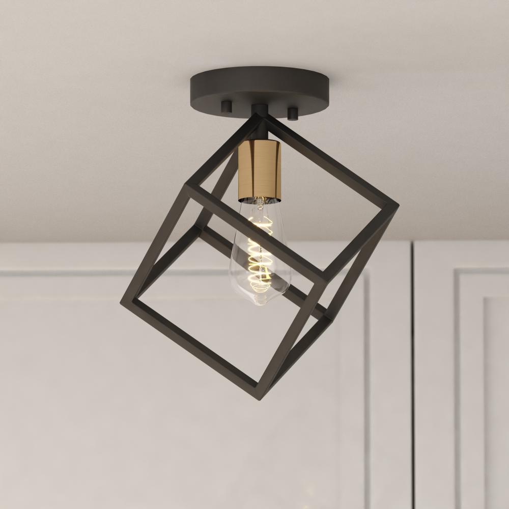 The Deering collection is made up of a stunning combination of matte black and gold satin brass finishes, giving it a chic and sophisticated geometric look. The metallic frame is crafted with such elegance that it stands out even in its simplicity. The exposed light bulb not only provides illumination but also adds to the overall charm of the light fixture. Contemporary yet industrial in design, this versatile flush mount would fit well in many spaces around your home.