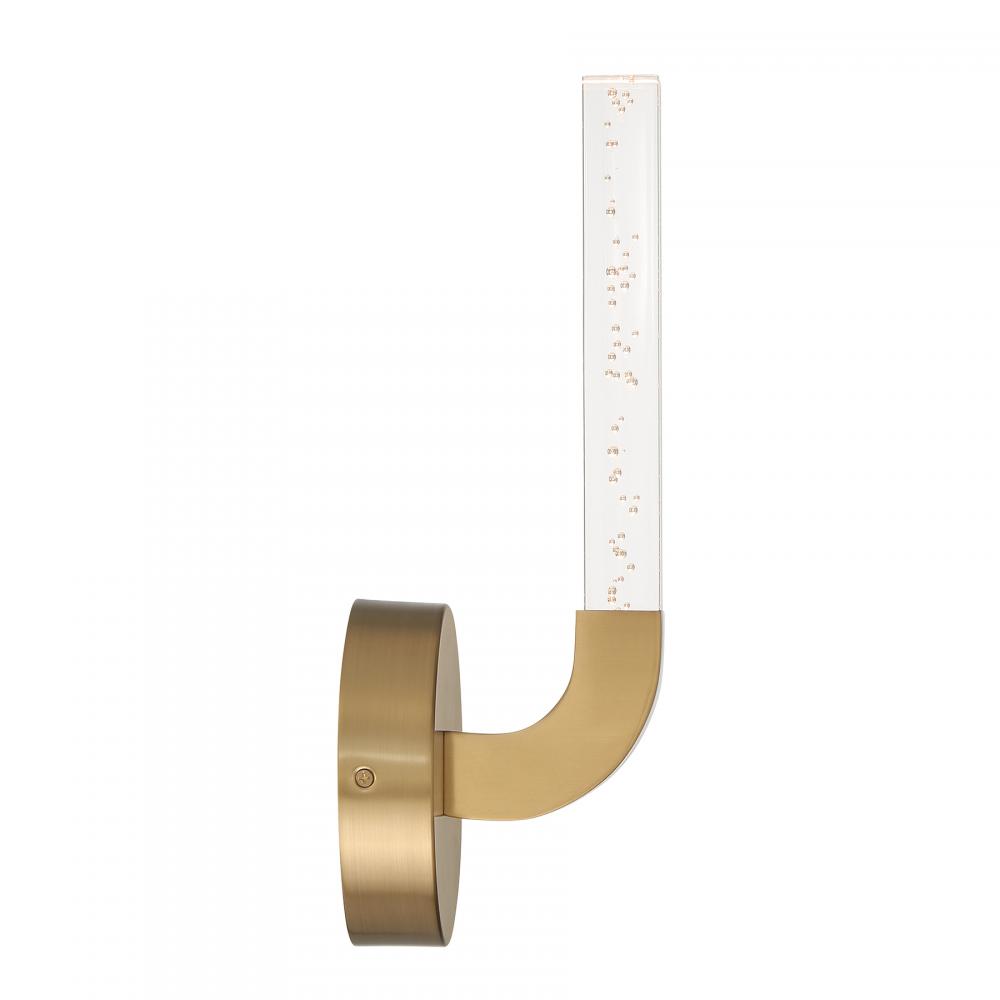 The Savoy House Del Mar 1-light sconce was designed by Breegan Jane, an award-winning interior designer and TV host. Its sleek and slim structure is a stunning example of how Breegan's designs bring the drama without overtaking the room. LED light shines through a clear seeded acrylic baton, adding eye-catching texture. Finished in Warm Brass. Del Mar is 13.25" in height, 5.25" in width and extends 4.75" from the wall. This sconce is damp area rated.