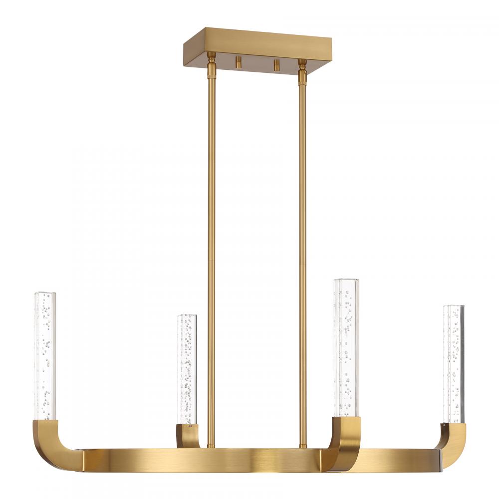 The Savoy House Del Mar 4-light chandelier was designed by Breegan Jane, an award-winning interior designer and TV host. Its sleek and slim structure is a stunning example of how Breegan's designs bring the drama without overtaking the room. LED light shines through clear seeded acrylic batons, adding eye-catching texture. Finished in Warm Brass. Del Mar is 30" in width and has an adjustable height ranging from 11.25" to 55.25. Comes with four 12" downrods and one 6" downrod.
