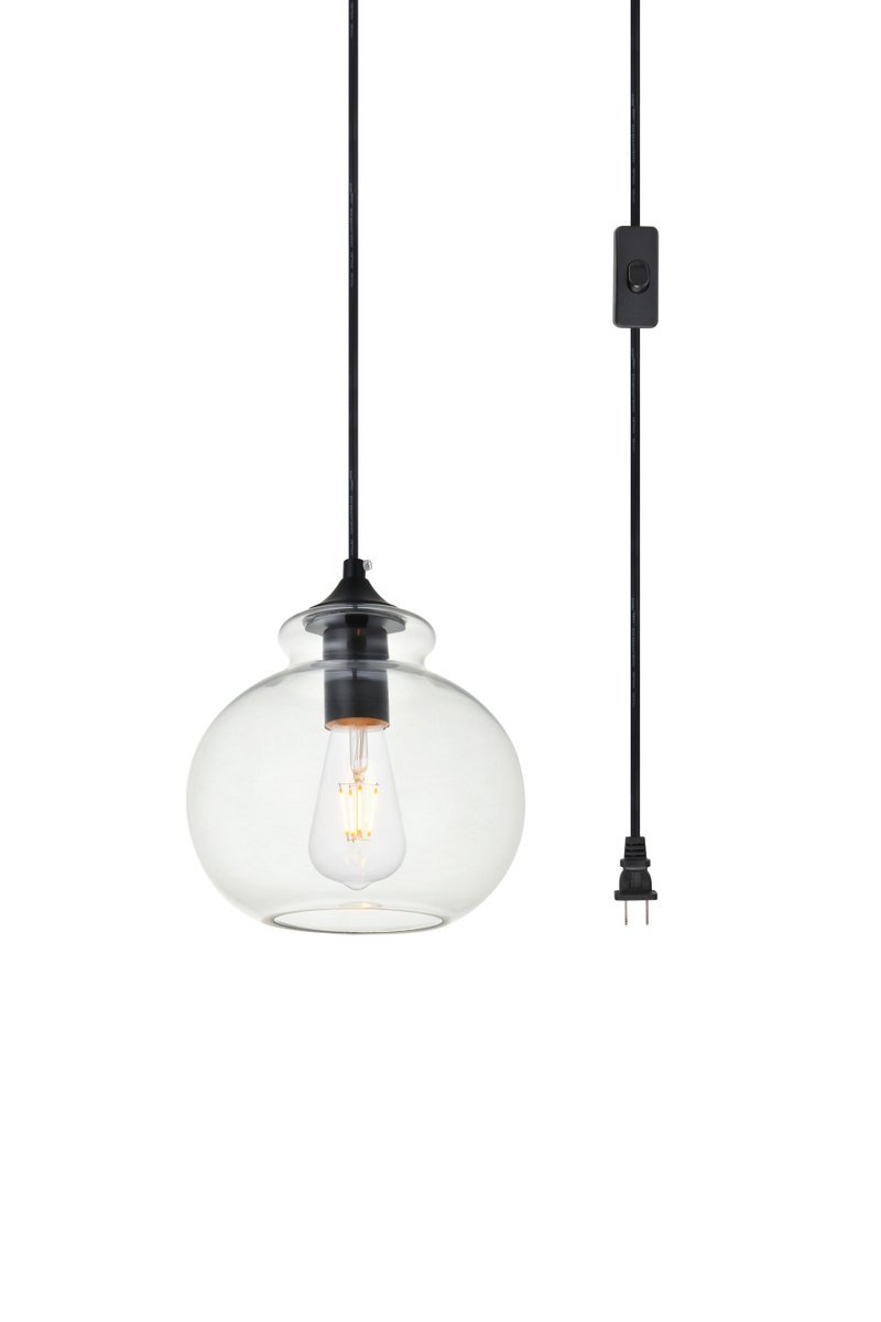 Elegant LDPG2244BK - Destry 1 Light Black plug-in Pendant With Clear Glass