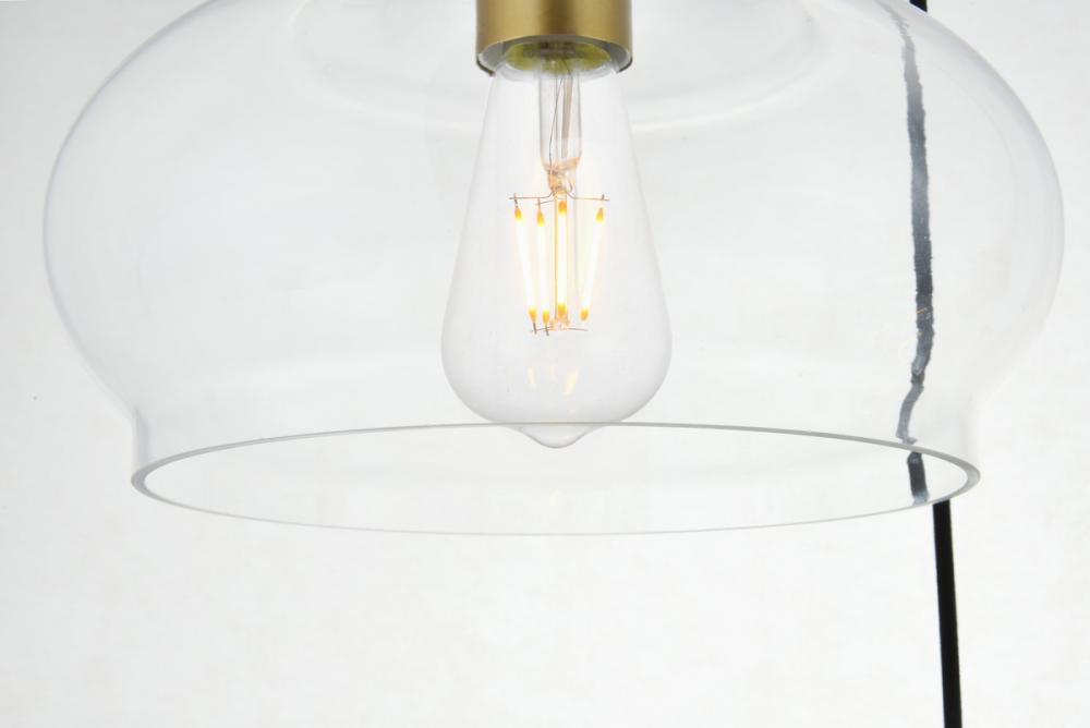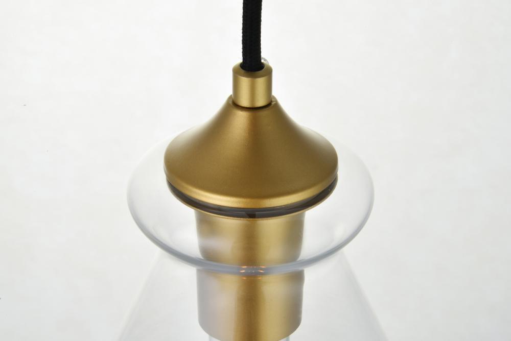 The small, but mighty Destry collection offers sleek pendant lamps that will add a powerful accent to your urban, industrial, or transitional décor. The light’s brass hardware finish adds to the interest of the piece. Brass 'top hat' design accentuates the clear glass shade. Each brass and clear conical shade holds one incandescent or LED light bulb (not included). Brighten your kitchen island, bathroom, entryway, or den with this one-light statement fixture. You may adjust the height to your desired length between 15 and 88