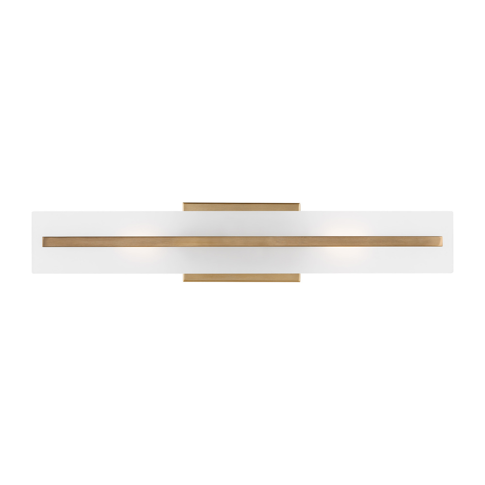 The Dex two light vanity fixture in Satin Brass is a contemporary design with three finishes and white acrylic diffuser creating a crisp look and bright clean ambiance. With the clean lines and classic styling, the Dex vanity series is versatile enough to be used in any transitional setting.
